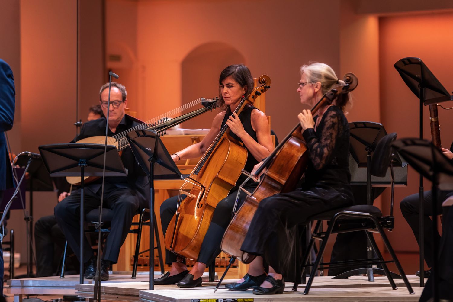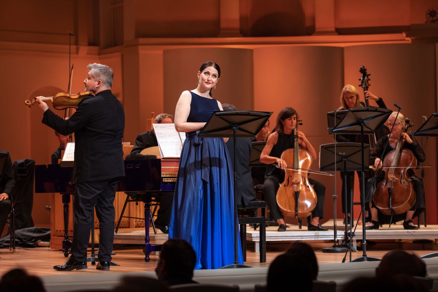 Музыкальную красоту в полной мере представил молодой французский барочный ансамбль «Лез Аксан», впервые приехавший в Россию. Его руководитель Тибо Ноалли по традиции таких коллективов совмещает скупое дирижирование с обязанностями концертмейстера группы скрипок и исполнением сольных фрагментов. Невозможно не отметить виртуозную игру таких солистов, как Матьё Дюпуа (орган) и Брис Сайи (клавесин). У первого инструмент звучал легко и грациозно; второй более всего понравился совершенством речитативного аккомпанемента – он создавал певцам идеальные условия. Из сугубо старинных инструментов была задействована лишь лютня, на которой мастерски играл Марк Вольфф.