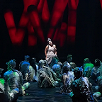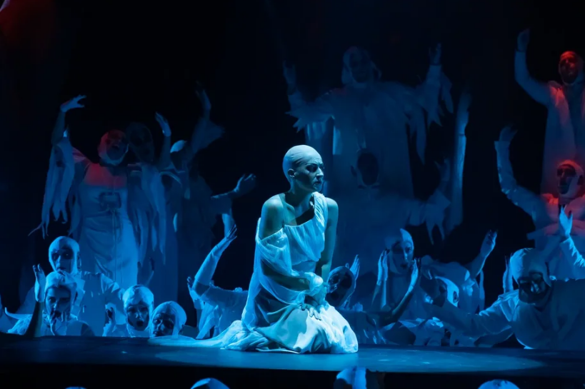 Уже одним названием оперы они задали направление, в котором публике следует искать ее суть (не человек же сказал: «Я есмь Альфа и Омега, начало и конец...»). Далее литераторы придумали не только увлекательную фабулу, но и на удивление поэтичный текст, переведенный для нас журналистом Йосси Тавором. Это не текст штраусовско-уайльдовской «Саломеи», где уже одна фраза «Тайна любви больше, чем тайна смерти» затягивает в такие глубины, что и дна не достать, и выбраться невозможно. Но своей образностью он напоминает соломонову «Песнь песней» с ее ароматом первых времен и проступающим в каждой фразе: Тебе, Господи! Гиль Шохат, напротив, – ни нотой в архаику. Он создавал опус своего времени с привычными диссонансами и безумными звуковыми амплитудами. А если и заглядывал в прошлое, то в недалекое, где молодой Дебюсси с восторгом смотрит в сторону Вагнера, пытаясь перенять его стилистику, и где пришедший им на смену Стравинский подступается к своей «Симфонии псалмов» (черты этого трио нет-нет да и проступали на шохатовском полотне). В итоге вышло сочинение, в котором острые углы сочетались с текучими линиями, мгновения лирики – с беспрестанно накатывающим девятым валом. В этом была своеобразная красота и не просто сила – эпичность, которая появляется там, где хор, как у Шохата, одно из главных действующих лиц.