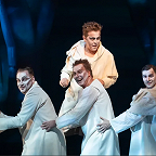 Спектакль опусу уступал. Нет, он не противоречил сказанному авторами. В нем была затейливость – респект хореографу Эдвальду Смирнову, который ловко разминал, как глину, хоровую «массу», одетую в изобретательные костюмы от Софьи Тасмагамбетовой и источающую такие пиано, что дух захватывало. Была притягательность благодаря выразительному оркестру под управлением Валерия Кирьянова (хотя осилить его толщу достойным исполнителям главных партий Ирине Окниной, Виталию Серебрякову и Александре Ковалевич порой было невмочь). Но режиссерский рисунок грешил прямолинейностью, которой в Священном Писании, если уж авторы оперы отсылают к нему, нет. А есть метафоричность и многослойные подтексты.