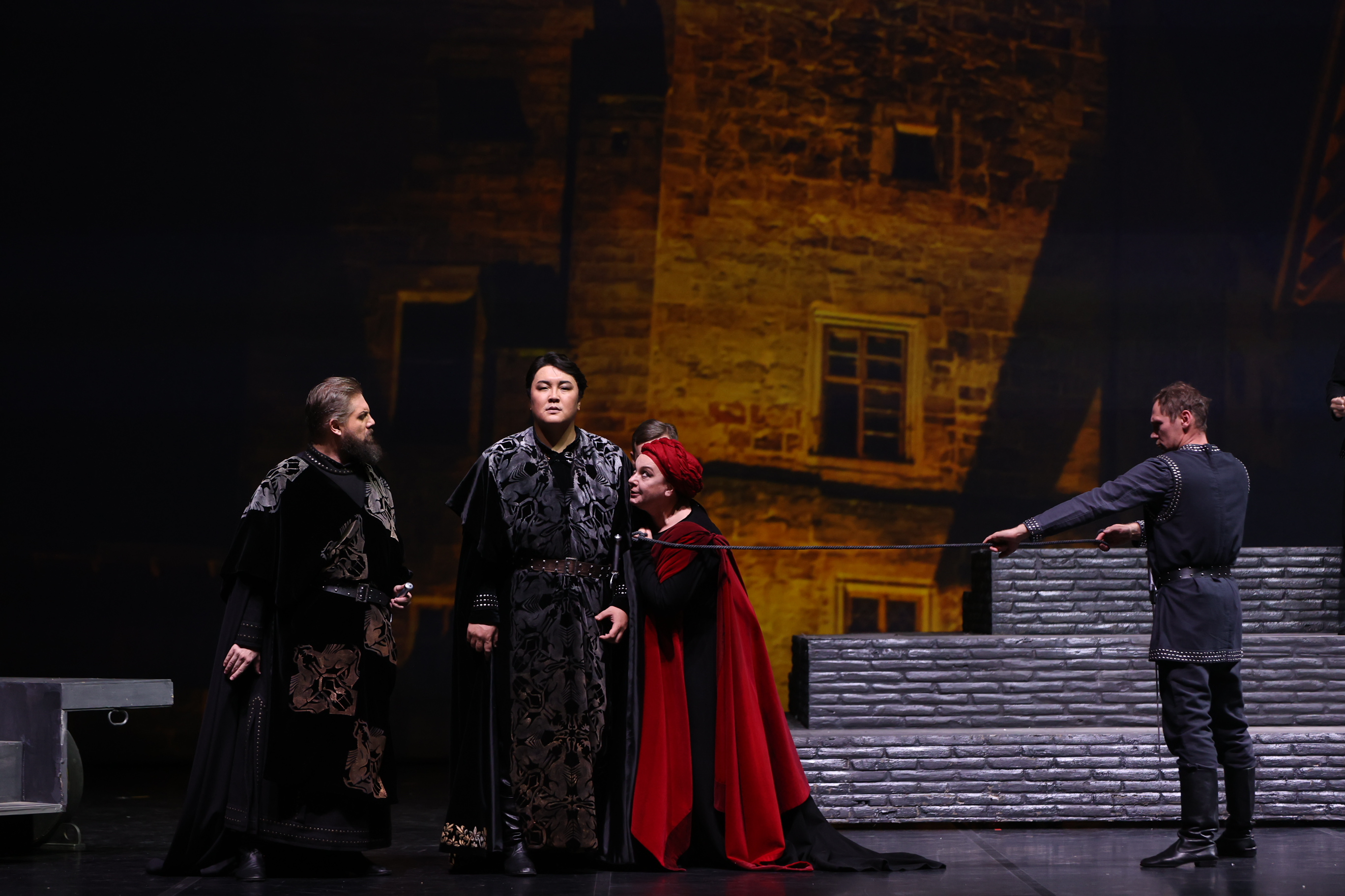 Монгольский баритон Ариунбаатар Ганбаатар (Ди Луна) словно создан для того, чтобы петь Верди: его огромный и в то же время мягкий, парящий звук безраздельно царил. Безупречная вердиевская кантилена доставляла физическое удовольствие. Геликоновский тенор Иван Гынгазов спел Манрико гораздо лучше, чем на премьере в родном театре четыре года назад, – более уверенно и музыкально. Его мощный драматический тенор идеально подходит партии, но еще есть куда расти мастерству: иногда звучание грубоватое, нестильное, верхние ноты не всегда точны и стабильны (в частности в стретте «эверест» был взят микстом и отнюдь не идеально).
