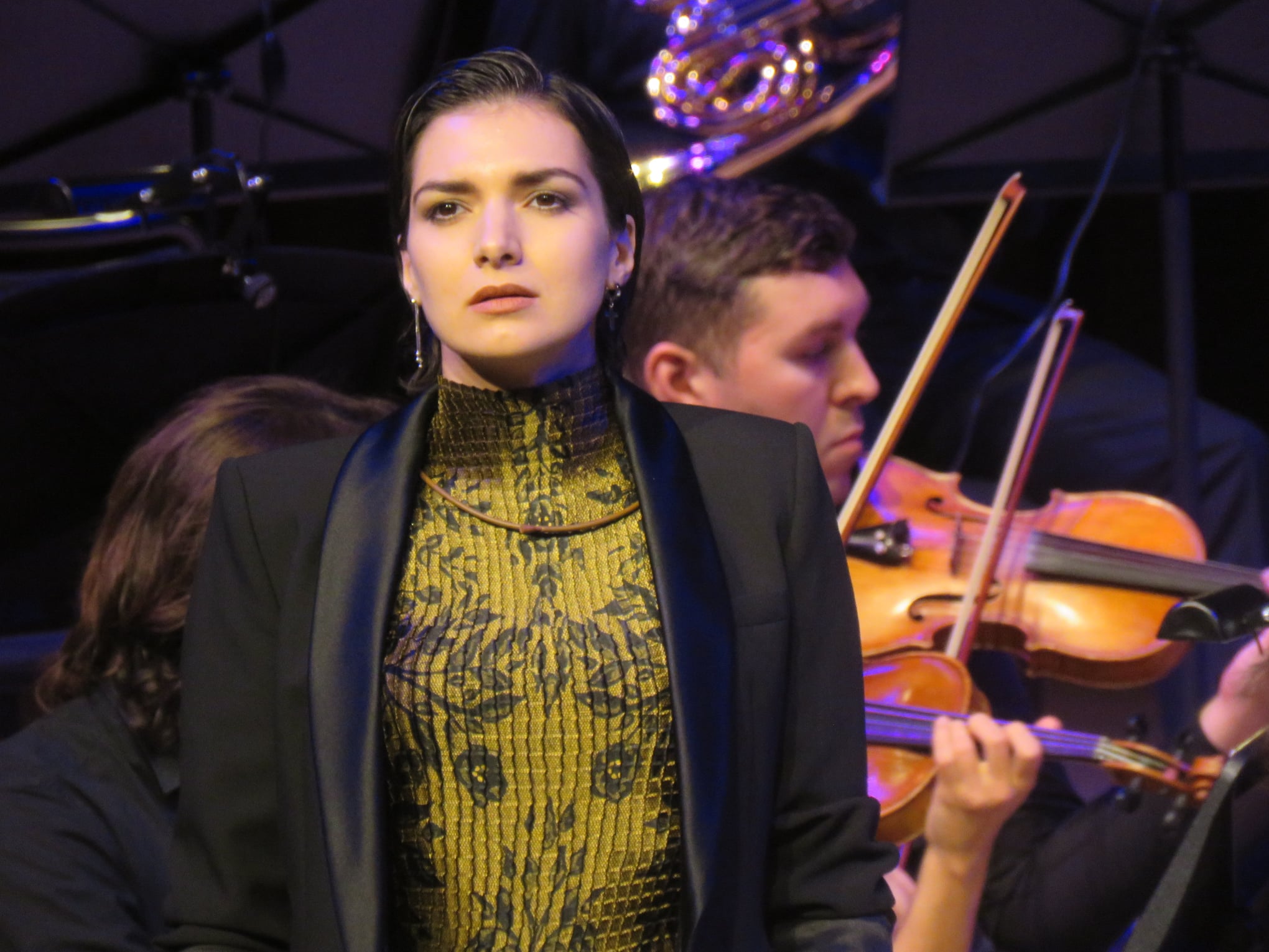Второе отделение было целиком отдано Россини. Танкред из одноименной оперы был в чем-то схож с Ромео, но очевидно, что герой более опытный и рассудительный и более брутальный: властные интонации, к которым прибегала певица, оказались особенно уместны. Контрастом прозвучала сцена Дездемоны, в которой Белкиной удалось нарисовать очень женственный и эмоциональный образ героини. Наконец – феерия колоратурного блеска и комедийной легкости в архисложной арии Анджелины из «Золушки» с ее головокружительными темпами и разбросом диапазона.