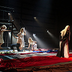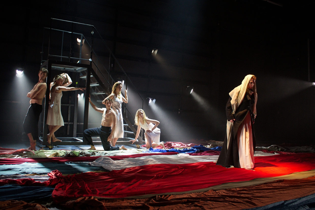 Но концепция оказалась притянутой за уши. Видом героиня – типичный европейский ребенок в унисексе: шапка, куртка, резиновые сапоги. Милостыню просит Христа, а не Аллаха ради. Покойная мать, представляющаяся ему, – чисто Богородица без всякой паранджи... Куда убедительнее будет противопоставление в финале музыки Ребикова и жесткой действительности. «Экий вальс я сочинил на века, вслушайтесь в его полетную мелодику, в его хрустальные переливы», – нашептывал композитор, рисуя дивные сияющие дали, в какие отправилась душа замерзшего ребенка. «Да ладно! Душа! Мне б с заключением успеть до новогоднего корпоратива», – это подаст голос «мадонна», деловито высвободившаяся из библейских покрывал и обернувшаяся патологоанатомом, которой недавние «ангелы» (белые крылья на белых рюкзачках, неоновые нимбы) подгонят прозекторский стол на колесиках.