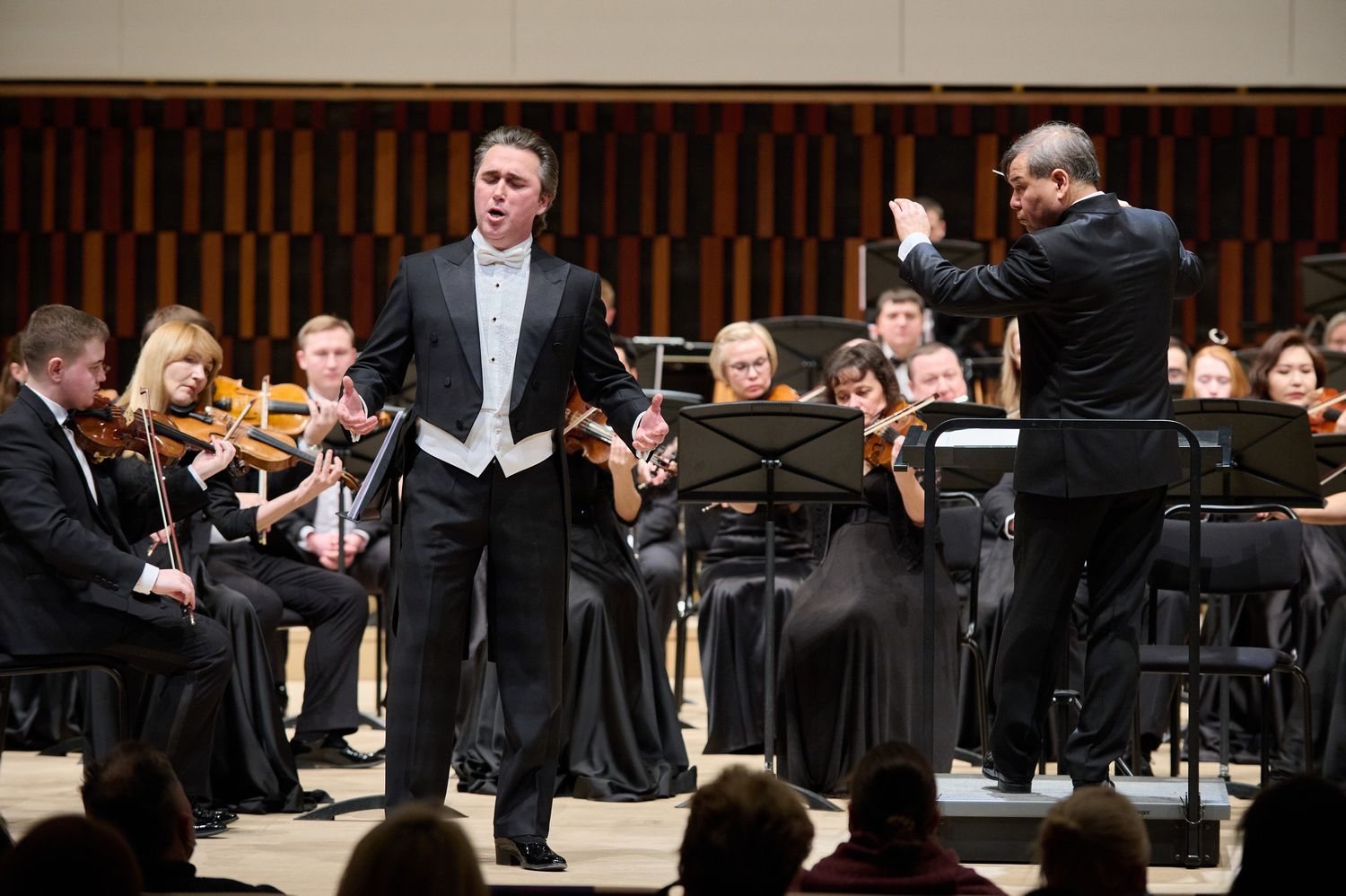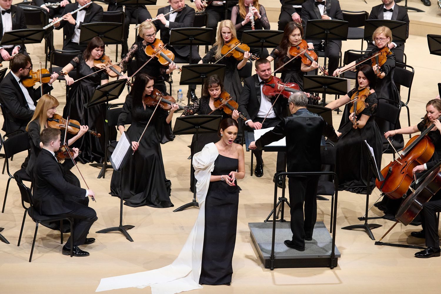 Вокальная программа была максимально популярной – песенка Герцога из «Риголетто», Романс Неморино, ария Лауретты из «Джанни Скикки» – и все в таком духе, а на закуску – «Застольная» из «Травиаты». Аида Гарифуллина исполнила в итоге пять арий (на два отделения), при этом успела сменить три концертных платья, одно другого откровеннее: складывалось впечатление, что весь концерт был задуман, главным образом, ради этого дефиле от кутюр. Чисто лирическая Лауретта у нее прозвучала хорошо, и даже многотрудная каватина Нормы (была спета только ее первая, меланхолическая часть) в целом удалась – можно было ощутить красоту тембра и мастерство звуковедения. Но там, где солистка посягала на чужую территорию, дела обстояли не столь безоблачно. Если ариозо Иоланты еще с оговорками можно записать ей в актив, то в арии Валли из одноименной оперы Каталани Гарифуллиной откровенно не хватало силы звука и насыщенности тембра. Что и неудивительно, ведь эти арии предназначены для лирико-драматического, если не драматического сопрано, дуэль с плотным и экспрессивным оркестром тут нешуточная, и певица с этой нагрузкой объективно справиться не может. Но, судя по всему, Гарифуллина решила идти путем многих своих предшественниц – надеемся, на этом пути она не потеряет голос и сумеет его перестроить на тот репертуар, который хочет петь, как это сумела в свое время сделать, например, Анна Нетребко. Уверенности, правда, в этом нет никакой – примеров обратных в истории мирового вокала гораздо больше.
