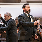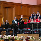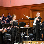 В Бетховене несколько недоставало разнообразия красок, партитура получилась брутально одномерной. В квартете солистов больше всего сольного пения у баса и тенора: Алексей Тихомиров звучал рыхловато, для Сергея Романовского бетховенская стилистика, кажется, слишком тяжеловесна – его элегантный голос с трудом справлялся с плотной фактурой. Что касается дам, то традиционно в этом опусе меццо было неважно слышно, ее здорово заглушала сопрано, но едва ли в том вина солисток – обычно так и звучит этот ансамбль, написанный не очень выгодно для низкого женского голоса.