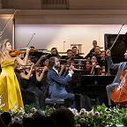 Совсем иным предстал Даниил Трифонов в Тройном концерте Бетховена. Трудно вообразить более мягкого и поэтичного звучания, а кроме того, пианист оказался идеальным партнером нежной скрипки немки Анны-Софи Муттер и певучей виолончели испанца Пабло Феррандеса. Бетховенское сочинение показалось самым совершенным номером программы (и маэстро Гергиев не придал немецкому классику излишней напористости).