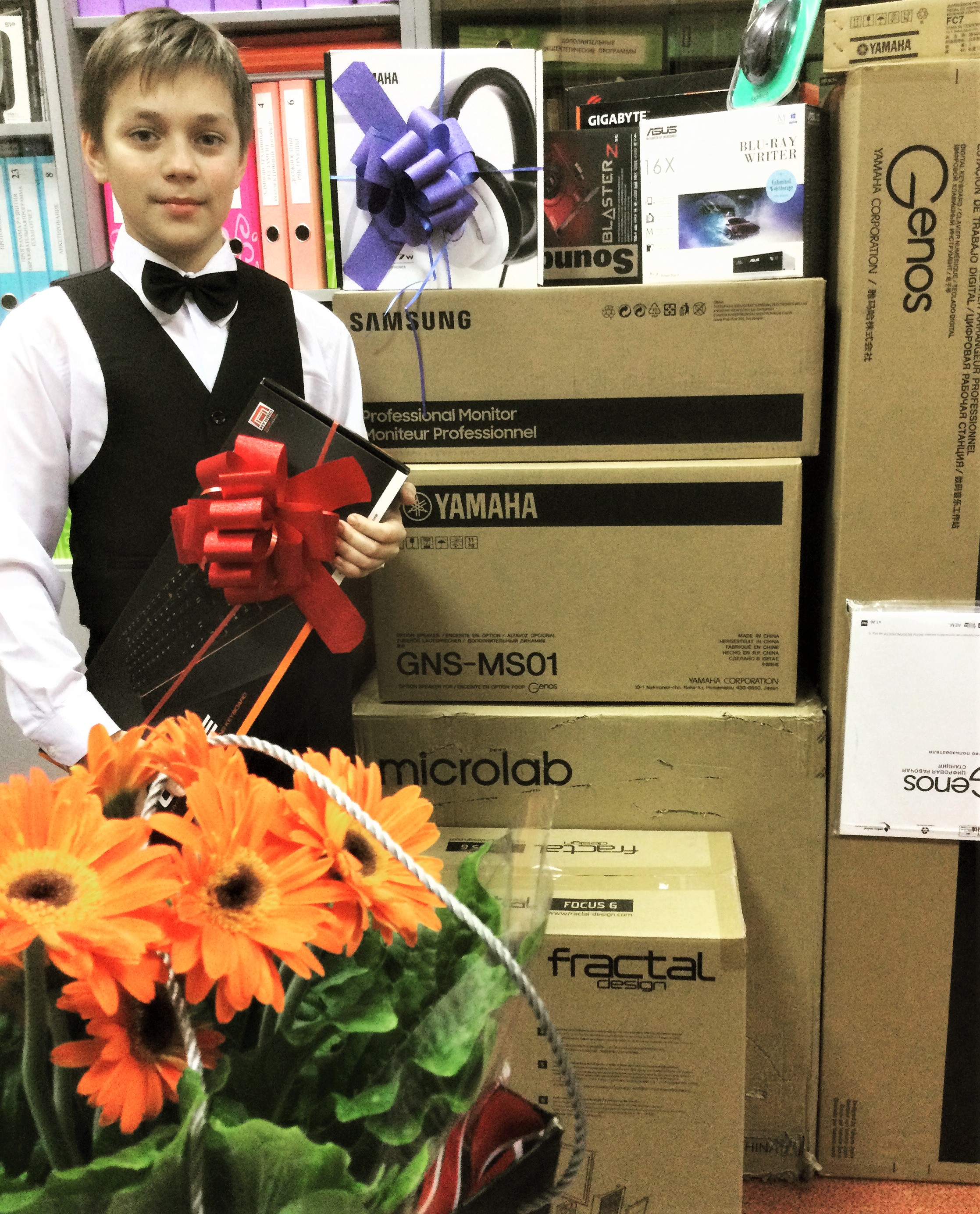 Ю.В.: Ребят, нацеленных на профессию, видно в начале пути. В Подмосковье уже не первый год реализуется прекрасное начинание Губернатора Московской области Андрея Воробьёва - программа «Одарённые дети». По результатам 2021 года одним из победителей программы, первым в номинации «Электронные инструменты» стал наш ученик, Ярослав Мейгеш (преп.И.А.Елесина). Благодаря гранту, который был торжественно вручён победителю министром культуры Еленой Харламовой, теперь он обладатель самой лучшей на сегодня электронной рабочей станции Yamaha «Genos» и высокопрофессионального компьютера для создания композиций и аранжировок.