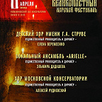 Примечательно, что исторически именно Рахманиновский зал более других в Москве причастен к традиции великопостных фестивалей, ибо когда-то был основным залом Синодального училища, из стен которого вышло немало церковных композиторов и знаменитых интерпретаторов русской духовной музыки. На концерте выступили хор «Пионерия» им. Г. Струве (худрук Елена Веремеенко), вокальный ансамбль «Ариелль» (худрук Эльмира Дадашева) и Хор Московской консерватории (худрук Алексей Рудневский). Общая интонация программы, несмотря на большие различия коллективов, –эмоционально сдержанная, даже суровая, подразумевающая грустно-вдумчивую сосредоточенность и самоуглубленность.