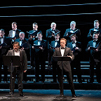 В этой буффонной стихии господствуют стремительные темпы, гибкие речитативы, изощренный по гармоническим и ритмическим решениям оркестр и многочисленные ансамбли, доходящие до девяти поющих участников. Здесь нет неподъемных по сложности арий (точнее, арий нет совсем, только краткие ариозо), и все-таки эта опера – сущее испытание для певцов и дирижера: она поистине виртуозна. В ней жизненно важны четкий темпоритм, точность и синхронность, одновременно в ней ни в коем случае нельзя терять «россиниевскую» легкость музицирования, иначе она обернется тяжким, очевидным для публики трудом и невыносимым занудством. Валерию Гергиеву с его энергичной манерой дирижирования полностью удается этого добиться: он ловко сплетает вокальную и оркестровую вязь в единое полотно – музыка летит, увлекая в комедийном вихре и певцов, и оркестр, и публику.