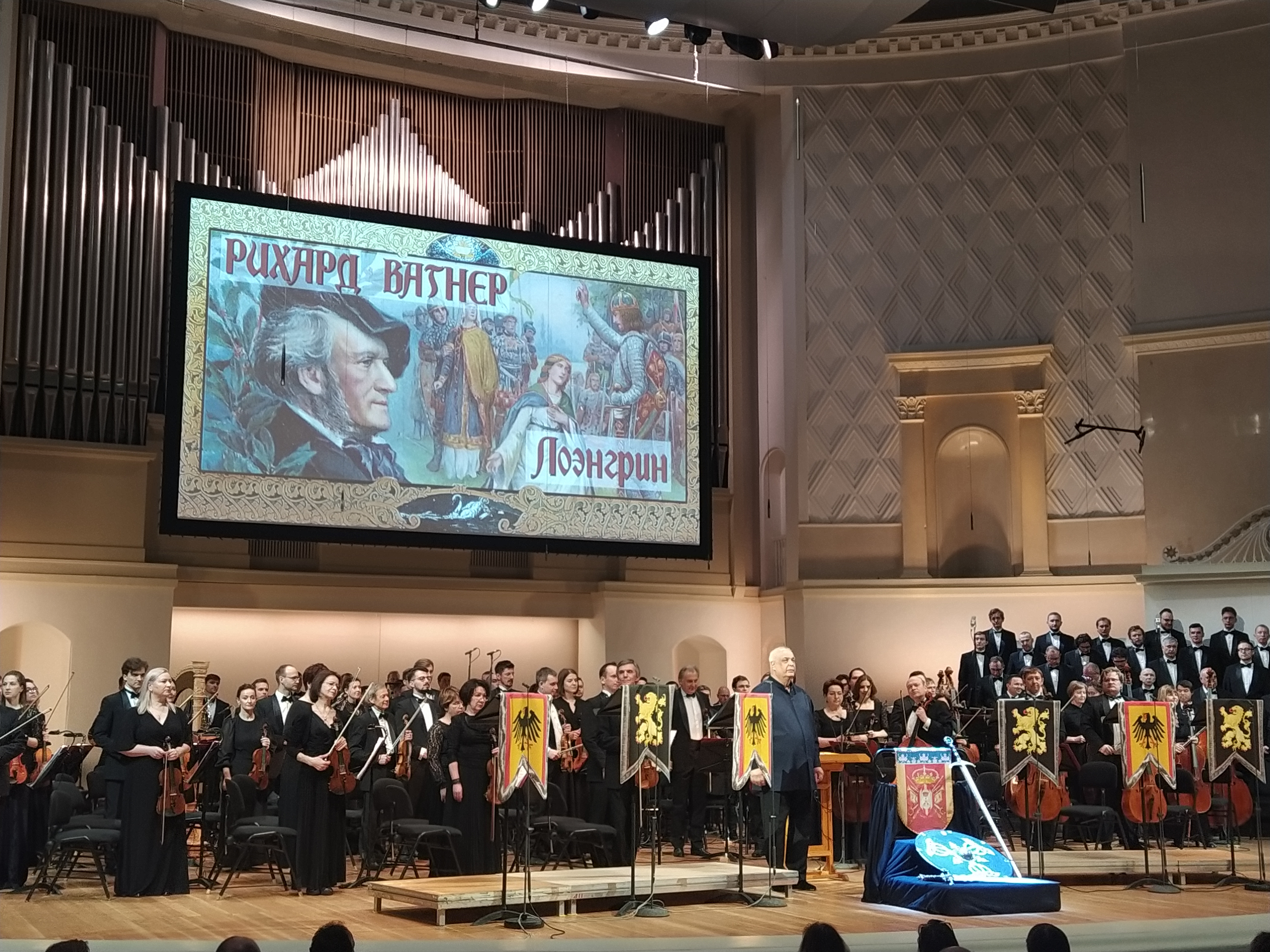 Исполнение носило элементы театрализации: солисты пели в исторических костюмах, каковых сегодня в постановках Вагнера не сыщешь днем с огнем. Особенно эффектными оказались королевский наряд Генриха и сказочный — Лоэнгрина, явно отсылающий к собиновскому образу. Продуманно подобранные видеопроекции с изображениями германских замков и средневековых персонажей усиливали восприятие прекраснейшей оперы мирового репертуара.