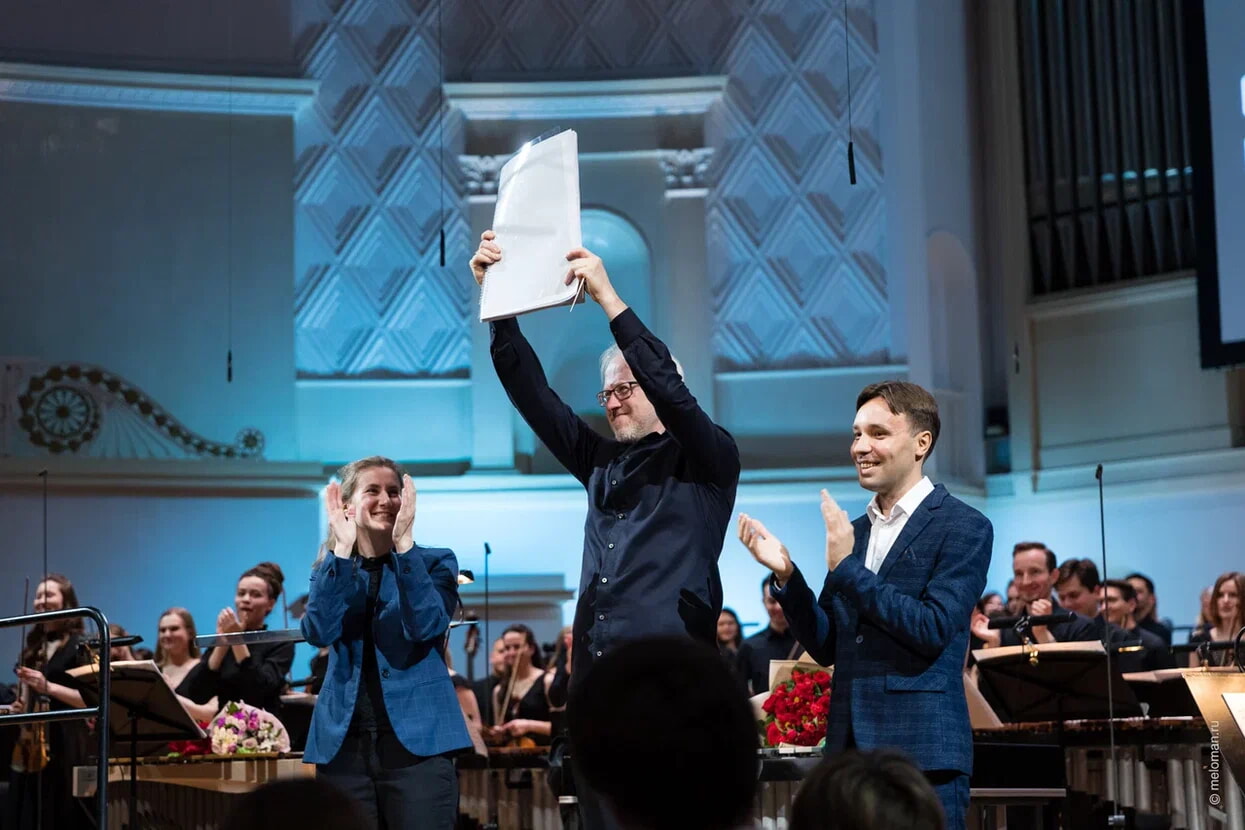 Строго говоря, в концерте было исполнено еще одно произведение Стива Райха. Это его знаменитая «Музыка хлопков» (Clapping music), у которой в этом году тоже юбилей – 50-летие. Исполнялась она ведущим концерта вместе с залом как иллюстрация техники фазового сдвига. Как известно, Райх слушал музыку преимущественно в записи (в том числе по радио). Неслучайно он экспериментировал с магнитофонами, которые воспроизводили одно и то же на разной скорости. Так он пришел к своей технике phase shifting – ее еще переводят как «сдвиг по фазе» (кстати, техника tape loops, унаследованная Райхом от Пьера Шеффера, тоже магнитофонной природы). Исполнить «Музыку хлопков» получилось не с первого раза: «сдвиг по фазе» сложен даже для профессиональных музыкантов (а аудитория явно была искушенной, умеющей читать длительности на филармоническом экране). По всей вероятности, это было самое многолюдное исполнение Clapping music со времени ее создания.