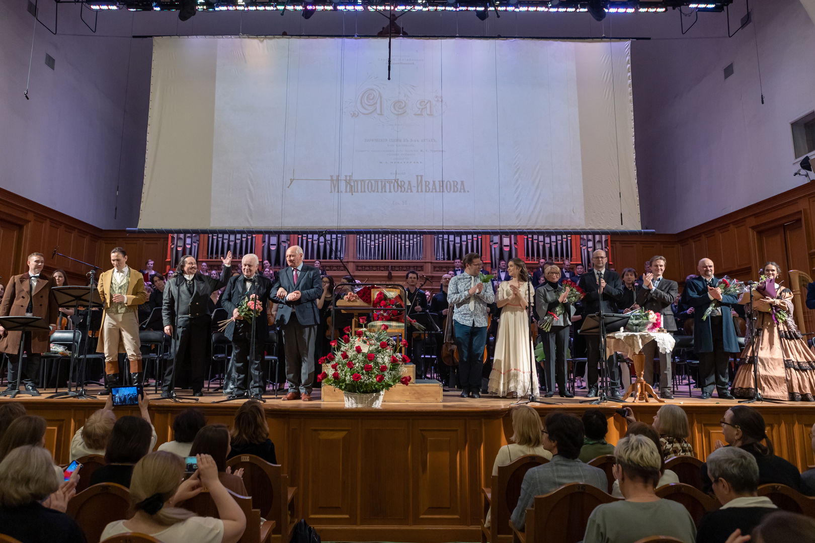 Возрождением «Аси» занялся Музыкально-педагогический институт им. Ипполитова-Иванова, празднующий свое столетие. Его сводный хор и молодежный оркестр составили опору исполнения; к двум коллективам присоединился третий – Русский хор им. Свешникова, а также солисты московских оперных театров и студенты-вокалисты консерватории и Ипполитовки. Вдохновителей у проекта два – ректор вуза Валерий Ворона и маэстро Юрий Симонов: прославленный дирижер впервые за многие годы (с момента ухода с поста главного дирижера Большого театра в 1985-м) представил, таким образом, свою новую оперную работу, и уже одно это сделало возобновление настоящим событием.