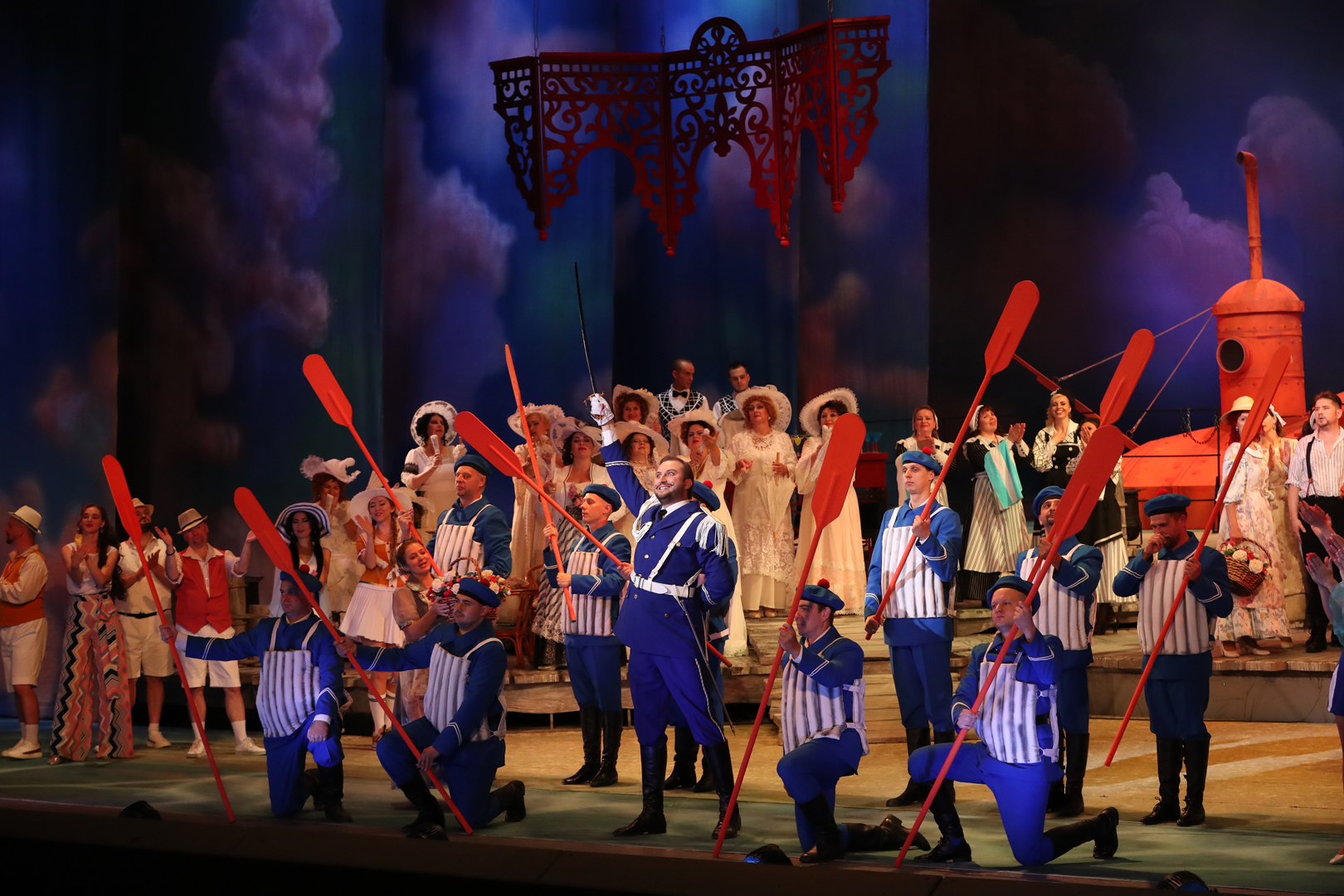 Музыкальные достоинства нового спектакля удалось раскусить не сразу. Предоставленное место в глубине центральной ложи – локация, акустически проблемная, звук туда идет плохо, поэтому весь первый акт не покидало разочарование: голоса и оркестр звучали тускло и обезжиренно. В антракте пришлось искать что-то более подходящее, что сделать было непросто: в последний вечер сезона на премьеру, кажется, пришел весь Минск. Как в студенческой молодости, удалось пристроиться на галерке – зато музыкальные впечатления оказались на пару порядков интереснее. Правда, вылезли другие недостатки. Во-первых, с верхнего яруса отлично видна вся постановочная кухня: например, как фальшиво выныривают из люка подлодки матросы Белькоре (на самом деле просто приходят из боковой кулисы, что видно всему ярусу) или как более чем буднично рабочие сцены катают парусник. Похоже, постановщики брали в расчет только те ракурсы, что увидит на премьере дирекция и завсегдатаи партера – до самой же верной публики, обитателей галерки, им особого дела нет. Во-вторых, сильно мешало «усовершенствование» партитуры: из динамиков постоянно шел «приморский фон» – крики чаек и плеск волн, – особенно слышный как раз на верхнем ярусе. Его, очевидно, добавили для общего настроения, но как-то «забыли», что Доницетти таких звуковых впечатлений не предполагал, и на речитативах или тихом пении они откровенно портили музыкальную ауру спектакля.