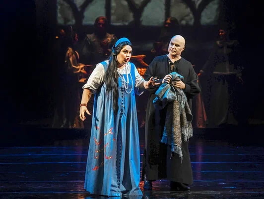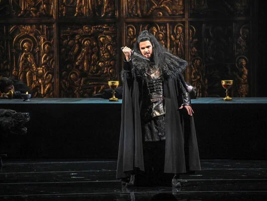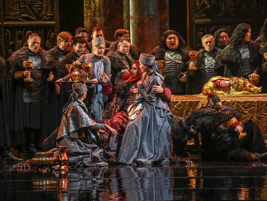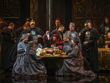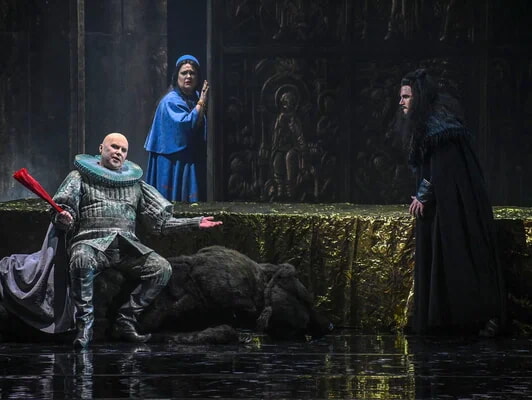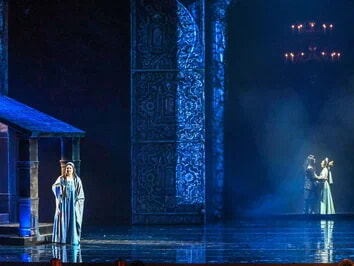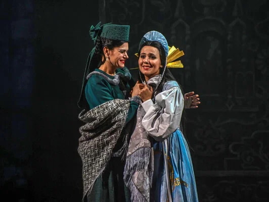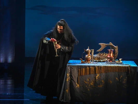 Некоторые важные партии оба вечера поют одни и те же артисты. Малюта Андрея Триллера отличается четкостью артикуляции, вниманием к пропеваемому слову. Невероятно эффектен Юрий Комов в партии Бомелия: его знахарь – абсолютное воплощение интриганства и коварности, при этом звучание, скорее, героическое, нежели характерное. Приглашенной звездой обоих вечеров становится ученица прославленной Ирины Богачевой Олеся Петрова из Михайловского театра: ее глубокое, гедонистически красивое и мощное меццо невероятно органично в партии страдающей Любаши, этой русской Леди Макбет поневоле.