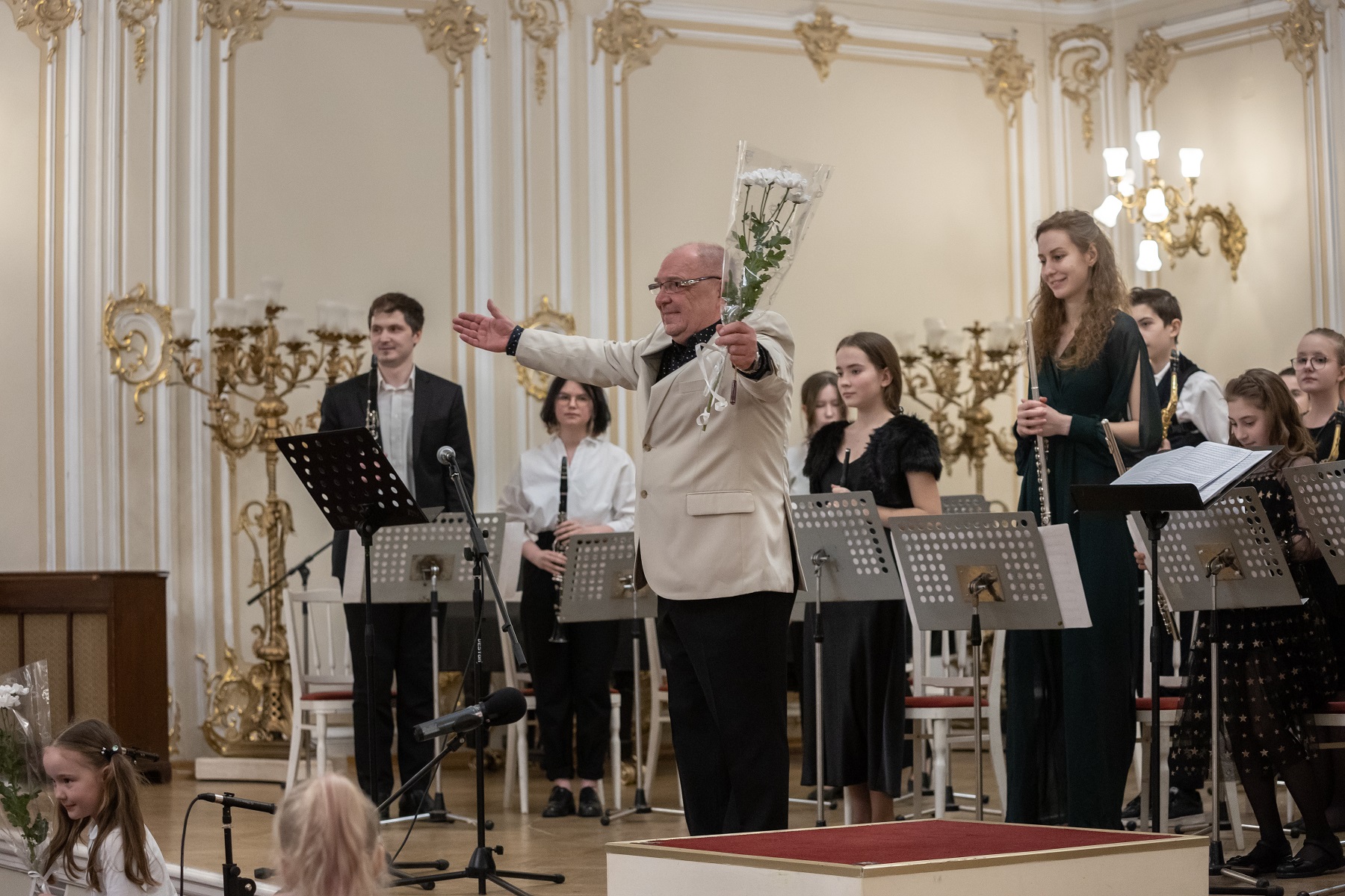 Но главный концерт общегородского значения состоялся уже после присвоения школе имени Портнова, спустя полгода после обретения нового статуса – 9 апреля 2022 года в Малом зале филармонии. Событие поистине грандиозное – и по задумке, и по составу исполнителей, и по качеству исполнения. Сюрпризы начались с самого начала: зрителям был показан фильм, созданный преподавателями школы Генриэттой Анатольевной Фроликовой и Романом Юрьевичем Васильевым. Фильм уникальный – в нем переплелись факты из жизни композитора, его творческий путь, рассказ о богатом музыкальном наследии и неразрывной связи со школой, которая отныне по праву носит его имя. Удивительная интонация – любви к прекрасному городу на Неве, к искусству, к жизни создавалась бессмертной музыкой композитора, которая погружала зрителей в глубину его музыкального мира: именно этот созданный большим художником мир отныне будут хранить и развивать его последователи, мальчишки и девчонки, для которых жизнь Георгия Портнова стала примером. Они показали это на концерте, буквально «зажигая» зал своей увлеченностью и своим мастерством. В музыкальных номерах концерта был представлен разнообразный репертуар – русская и зарубежная классика, обработки фольклорных произведений, и, конечно же, произведения Портнова, своеобразным лейтмотивом проходящие через весь концерт. Юные флейтисты, домристы, гитаристы, скрипачи, гусляры, хор младших классов и зажигательный духовой оркестр – все выступили профессионально и получили заслуженный шквал аплодисментов.