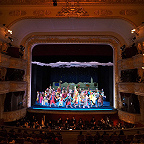 Этому в немалой степени способствует музыкальное решение, за качество которого отвечали главный дирижер Константин Чудовский и хормейстер Алексей Петров. Коллективы звучат насыщенно, по большей части радуя красотой и точностью. Лирическое уравновешено с комедийным – последнее подано более выпукло, зажигательно, что соответствует общей концепции постановки. Молодые голоса солистов удивляют силой и выносливостью. Центральная лирическая пара – Игорь Леус (Вакула) и Ольга Стародубова (Оксана) – поручена весьма плотным и звучным, мощным голосам, в которых, быть может, не всегда хватает изящества, но витальности – с избытком, что для этой оперы и для такого ее решения, наверное, важнее. Гораздо больше изящества в Солохе Елены Бирюзовой: ее лукавство и хитрость выходят весьма утонченными. Прекрасна работа Алексея Семенищева: его Бес одновременно элегантен и карикатурен, а звучит ярко, под стать главным героям. Искрометной комедийностью порадовал Евгений Крюков (Школьный учитель), вальяжной значительностью – Максим Шлыков (Светлейший). Как утверждает маэстро Чудовский, «…получилась очень добрая рождественская история со счастливым концом, уверен, что публика полюбит эту замечательную оперу». Думается, он прав.