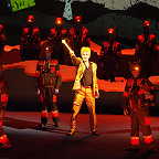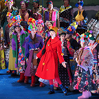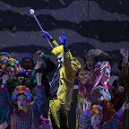 Помимо пестро разукрашенной провинции, в спектакле есть Петербург – другая реальность. «Петербург абсолютно формализован и безжизнен, с гимнами, парадными полонезами и маршами», – пишет Борис Павлович. Все здесь золоченое и напыщенное, механистическое и утрированное. Кстати, Бес, судя по его прикиду, родом оттуда же, его, видимо, в Диканьку сослали за какие-то адские козни. Впрочем, он же надевает во дворце маску-корону а-ля «король-солнце» – не исключено, что именно он тут и есть настоящий хозяин. Тожественный полонез «отрабатывают» люди-манекены в кринолинах, имитирующих капители античных колонн; «Русскую пляску» и «Пляску запорожцев» хореограф Нурбек Батулла решает в стилистике контемпорари, что весьма необычно и даже провокативно: Петербург от этого еще больше похож на модное тусовочное место, холодное и бездушное.