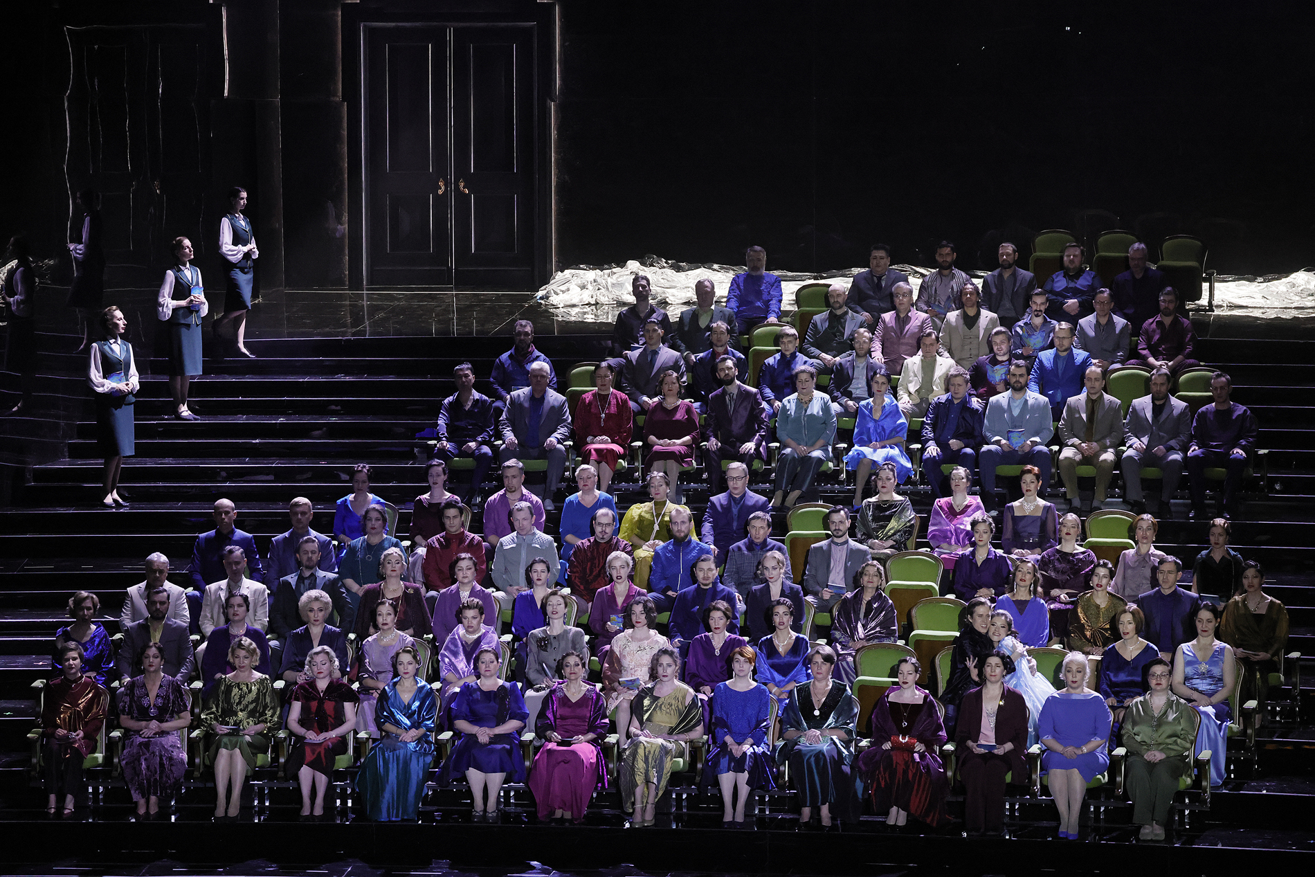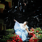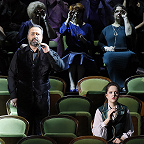 Наставшевс умеет рассказать, не показывая. Не понесут зажаренного барашка на праздничный стол – но атмосфера пира будет в наличии; не сцепятся в битве коварные татары и синодалова свита – за них поработают лазерные «кинжалы»; не выставят тело молодого князя на всеобщее обозрение – но так уложат погребальные цветы, что сомнений не останется: оно тут. По-своему Наставшевс распорядился и с требованием либретто прописать в спектакле ангелов. Они у него – капельдинеры. Аналогия законная: и те, и другие отвечают за порядок (мировой ли, театральный) и всегда готовы подсказать, разрешить проблему, поддержать под локоток, если что. К этому чину режиссер отнесет и няню героини. За исключением последней, строгие дамочки в униформе в спектакле не будут петь, их назначение – задавать тон в пластических этюдах, которые Наставшевс так любит. Вместе с коллегой, специалистом по этой части Екатериной Мироновой он заставит своих ангелов замирать в классических па, пролетать в лезгинке, красиво сходиться-расходиться, руководить, не теряя балетной осанки, хороводами гостей. А заодно – поминутно акцентировать избранный прием «театр в театре». Вот теперь – к краеугольному вопросу: зачем этот прием режиссеру понадобился?