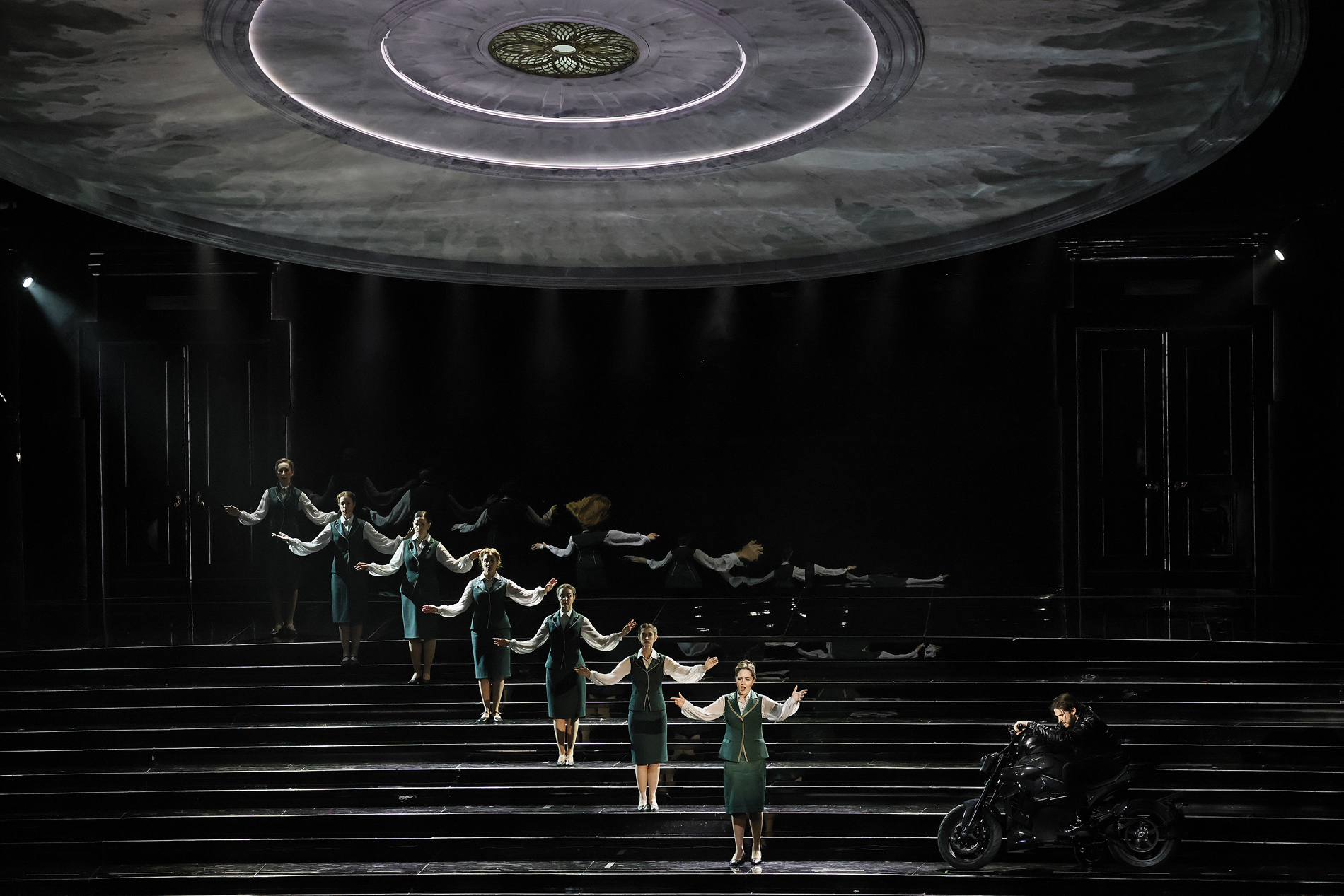 Василий Соколов пять лет пел на Камерной сцене Большого, однако в партиях иного драматического накала. «Мяса», мощи в его красивом голосе немного, а потому он часто не выдерживал соперничества с оркестром (под руководством Артема Абашева определенно подчеркивающим некоторую схожесть рубинштейновского письма с вагнеровским «потоком сознания»). Молодой же Андрей Потатурин и вовсе не созрел для партии ни вокально, ни актерски. С одной стороны – катастрофа: в первом театре страны не нашлось ни одного Демона. С другой, если Наставшевс выбрал героиней актрису, масштаб искусителя не важен. Надавить на пару привычных рычагов – честолюбие и гордыню, как уже было сказано, и рядовому из темного воинства под силу. Но это, скорее, шпилька в бок, чем аргумент в оправдание. Спектакль без настоящего протагониста в удачи не запишешь. Если же еще положить на чашу весов такую гирьку, как провальный образ Демона, который должен бы летать на своем адском гнедом, то бишь на мотоцикле, а по факту ползал малохольной улиткой (потому как создать эффект замедленной съемки не удалось)...