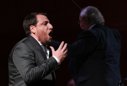 Редкий заморский гость добирается ныне до нас. В Большом же зале Московской консерватории было обещано явление сразу нескольких таких, включая занятого покорением мира соотечественника Богдана Волкова. Но, увы: 33-летний тенор затерялся в Европах (в январе он поет в разных постановках «Онегина» в Баварской опере и Ла Монне). А из трех гостей с Аппенин до Москвы добрались двое — пребывающие в расцвете сил Джузеппе Таламо и Франческо Солинас.