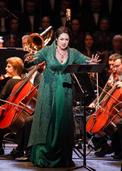 Как рассказывают, в одном из ресторанчиков Милана близ Ла Скала в ходу занятная игра: кто из посетителей-меломанов сходу перескажет сюжет упомянутой оперы, тому приз – бутылка шампанского. Сюжет и вправду из тех, над которыми легко поиронизировать: концы с концами не сходятся, нелепостей море, предыстория невероятна, в настоящем – шаблонный любовный треугольник. Но зазвучит музыка, и все претензии к сюжету рассыплются в прах. Вплетут в нее свой голос вокалисты хай-класса, и вовсе жди криков «Шедевр! Катарсис! Чудо!». В этом смысле вердиевский «Трубадур» – идеальная иллюстрация оперной аксиомы: не в либретто счастье, а в музыкальной драматургии. Незамутненная режиссерскими фокусами концертная постановка способна продемонстрировать это в полной мере. Подходяща она для «Трубадура» и по причине того, что действие статично, все самое захватывающее вынесено за кадр или вписано в дуэты и прочие ансамбли. Словом, хотя выбор формы исполнения был и вынужденным (рассыпалась постановочная команда спектакля), он оказался весьма органичным.