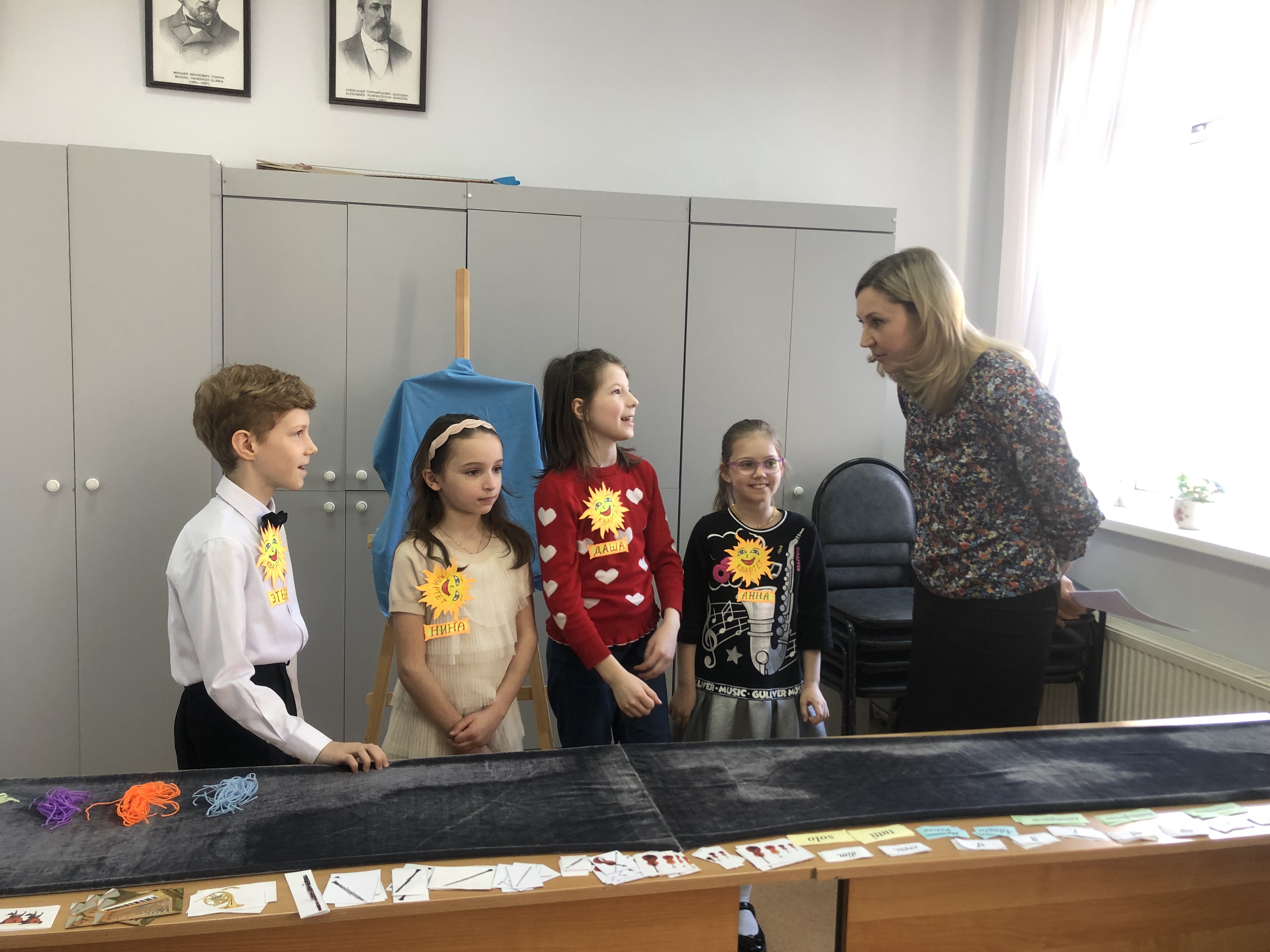 Но не только квесты-контрольные – обычные уроки музыкальной литературы в ДШИ «Дар» превращаются в увлекательный творческий процесс. Алсу Ринадовна – автор оригинальной системы пластического моделирования на уроках слушания музыки и музыкальной литературы. В основе методики идея визуального воссоздания прослушиваемого произведения: дети из цветных нитей и карточек выкладывают его модель, воспроизводя движение мелодии, инструментов оркестра, элементы композиции и драматургии. В результате даже те, кто пассивно наблюдает за процессом, включаются в продуктивный анализ. При этом педагогу не обязательно говорить – можно подправить визуальную модель в процессе ее создания, и уже после прослушивания обсудить произведение. Учащиеся фиксируют не только начальный образ темы, но и ее развитие, динамические оттенки, партии разных инструментов, изменение темпа. Самое главное – ничего не заучивается, не зазубривается, живая музыка проходит не только через слух, но и через глаза, пальцы детей, становясь частью визуального и сенсорного опыта.