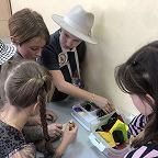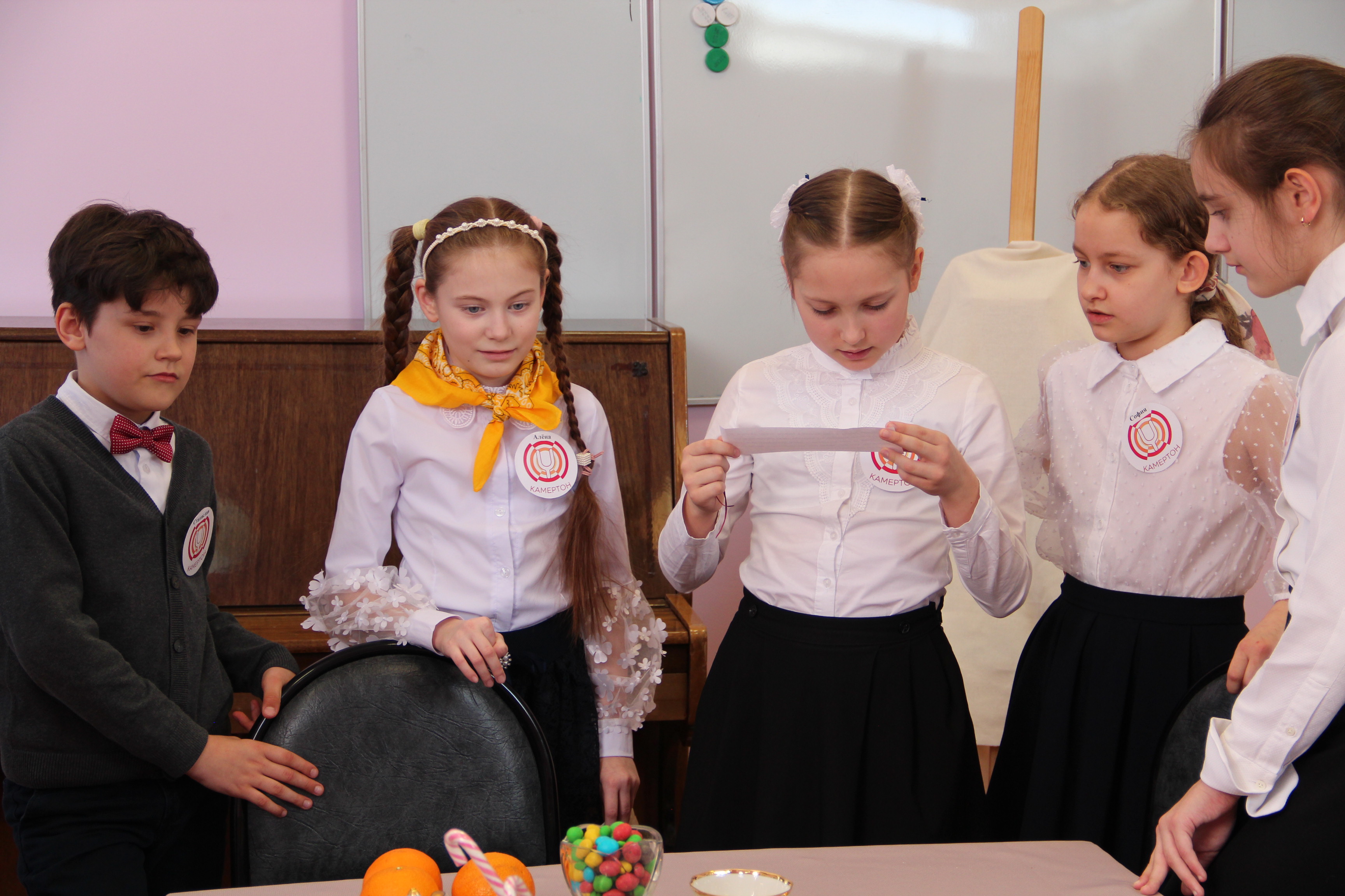 «Все задания были в необычном формате, реквизит – эксклюзивные предметы ручной работы, например, путеводитель команд – карта в старинном стиле, выполненная нашим преподавателем художественного отделения, – рассказывает Алсу Ринадовна. – Для команд были подготовлены четыре комнаты. Главная идея – музыку можно не только послушать, но и увидеть, потрогать, и даже попробовать на вкус. Так, в комнате «Волшебная шкатулка» ребят ждал накрытый стол – чай, кофе, шоколад, конфеты. Таким образом мы иносказательно напомнили им о балете П.И. Чайковского «Щелкунчик», и по звучащей музыке ребята определяли, о какой сладости идет речь. А после испытания с удовольствием продегустировали реквизит. В комнате «Картинная галерея» ребята должны были соотнести картины и музыкальные произведения, к которым они могли стать декорациями – очень полезный анализ, не узко музыковедческий, а ориентированный на взаимопроникновение искусств. В комнате «Оркестровая яма» ребят ожидали самые настоящие музыкальные инструменты и необычные аранжировки «Картинок с выставки» М.П. Мусоргского. Последняя комната «Музыкальная лаборатория» стала экспериментальной. Мне давно интересно было попробовать мою методику пластического моделирования с неподготовленными детьми, и вот представилась такая возможность. Самое главное, что справились все, отметив, что это было самое сложное испытание, но и самое интересное».