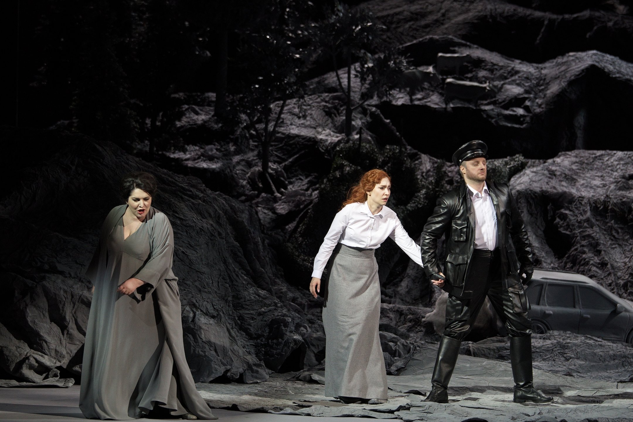 Был ли замах на приращение смыслов? Был. Древние кельты у Шапиро — военизированное сообщество на современный лад. Здесь нет мужчин и женщин, а есть бойцы в бронежилетах, шлемах, берцах и люди в серых пальто и шляпах — видом службисты госбезопасности, которые когда-то, у Беллини, были жрецами-друидами. Все они одержимы мыслью избавиться от чужеземного владычества. В оригинале — римского. Какого у Шапиро — каждый волен строить догадки на свой лад. Но одной может быть и такая: а не элемент ли весь этот маскарад эффектной упаковки, особые режиссерские хлопоты о которой просматривались с первой минуты спектакля до последней?