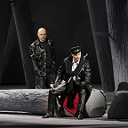 Верх фантазии — главный жрец Оровез, усаженный в инвалидную коляску, верх смелости — расстегивающие в полутьме пуговицы на своих одеждах Поллион и Адальджиза. Мизансцены тоже будут без затей: вошел-вышел, упал на колени. Разве что в последней картине осквернившего друидский храм Поллиона не введут, а втащат на плаще (читай: побили), да хор наконец поразомнется, выйдя в ложи и на ярусы судьей этому самому осквернителю.