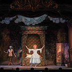 Первая находилась в тысяче режиссерских придумок, призванных превратить забронзовевший культурный феномен в элегантную стилизацию. Вторая, столь сладкая сердцу каждого, пронизывала спектакль от и до. В интерьерах скромного жилища семейства Мельника с нарисованными очагом и утварью могли бы обосноваться герои «Золушки», «Пиноккио» и «Красной шапочки» (художник Петр Окунев). Король — почти Кощей Бессмертный, вечно посягающий на девственную красоту, Церемониймейстеры — как двое из ларца, одинаковых с лица, выныривающие в Тридевятом царстве старого мультфильма. Лучшее же по части подробностей — медальон на шее Короля, в котором хранится чей-то портрет. По всему — селянки вроде Розалины, с которой он когда-то, на заре туманной юности испытал первую любовь. Это ее стареющий монарх захотел пережить еще раз и это в привычные воспоминания о ней, потерпев фиаско, он погрузится на своем одиноком ложе. Так нечто пронзительное, человеческое войдет в спектакль, где, казалось, все — марионетки и всё — игра на потеху.