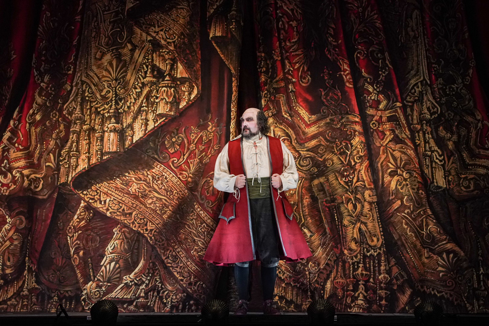 Было споткнулся оркестр — о проблему, похоже, сценографического свойства. В первой картине действие вынесено к авансцене в огороженное мизерное пространство, откуда вокальный звук летел в зал как из рупора, подавляя оркестр. И тот, сопротивляясь, в один совсем не прекрасный момент пойдет напролом, бросив хлопотать о красоте и стройности целого. В двух следующих картинах, где пространство раздвинется, баланс придет в норму, и музыканты под управлением Антона Гришанина будут уже вымешивать невероятный стилистический микст от Джордано несуетно, с удовольствием и, определенно, с благодарностью автору. Потому как никакой другой за последние сезоны не предоставлял им столь интересный — с пространными симфоническими эпизодами и виртуозными инструментальными соло материал.