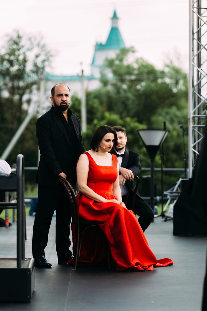 «Алеко» на поверку превратился едва ли не в семи-стейдж. Никаких сценических атрибутов, правда, задействовано не было, но режиссер Михаил Кисляров проработал с солистами мизансцены, линии поведения, взаимодействия, и это безусловно усилило выразительность целого. Наилучшее впечатление произвели Геворг Акобян (Алеко) и Анна Шаповалова (Земфира). Хороши были также Андрей Валентий (Старик), Константин Артемьев (Молодой цыган) и Ирина Долженко (Старая цыганка). Ну и, конечно, на высоте были оркестр под управлением Алексея Верещагина и хор.