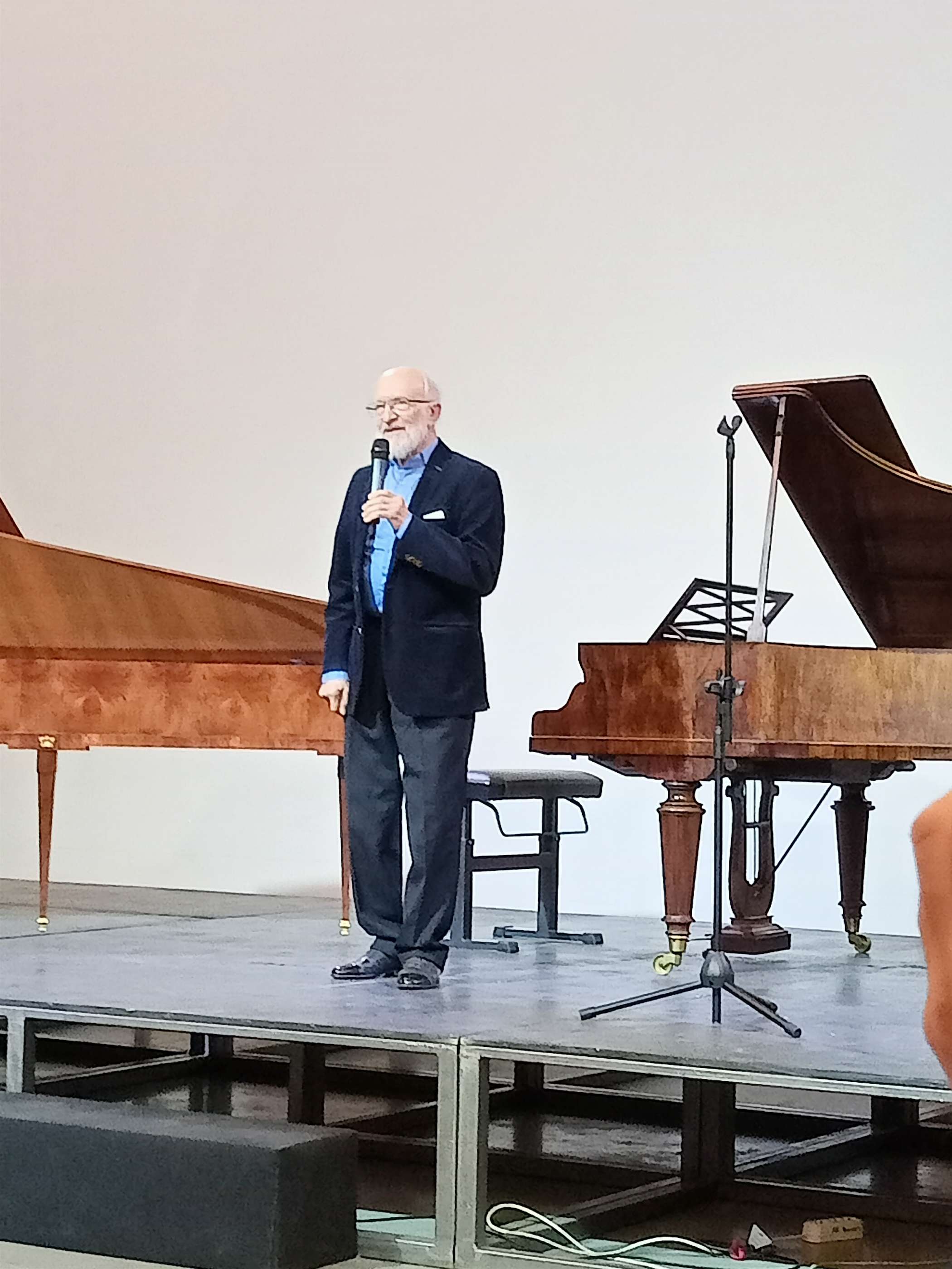 Финальным аккордом недели стал концерт Алексея Любимова. Один из наиболее выдающихся пианистов современности, лидер исторически информированного исполнительства в нашей стране в преддверии тура-презентации роялей различных эпох в приволжских городах решил представить программу и сами инструменты в Москве. В проекте, названном «Подлинность звука», участвовали три рояля: венский классический Walter образца 1792 года (копия Пола Макналти) и два реставрированных Алексеем Ставицким оригинала – романтический Érard (Париж, 1848) и позднеромантический Blüthner (Лейпциг, 1868). Можно было бы порассуждать о том, насколько подходило для их демонстрации довольно специфичное в акустическом отношении пространство зала ДК «Рассвет», попытаться сравнить звучание роялей и сделать умозаключения относительно того, насколько выигрывает музыка Моцарта и Бетховена, Шопена и Брамса в исполнении на аутентичных инструментах, но оставим все это специалистам по данному направлению. Думаю, что главным в тот вечер было все же исключительное качество музицирования – вне зависимости от того, какой инструмент задействован в том или ином сочинении. Тем более что и сам Алексей Борисович не слишком жестко придерживался хронологических рамок, исполняя некоторые произведения на инструментах более позднего времени, а на бис «опрокинул доску», сыграв два экспромта Шуберта на разных роялях, и вряд ли кто-нибудь в зале взялся бы всерьез отстаивать преимущество того или иного варианта. Как говорится, «оба лучше».