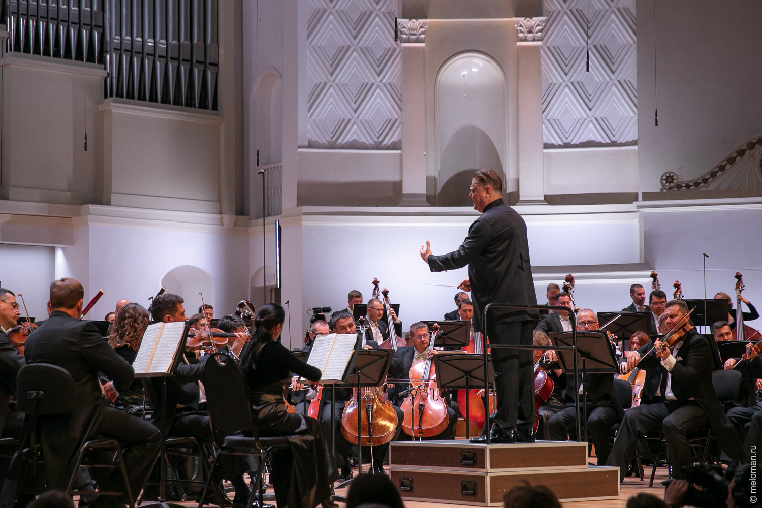 На следующий вечер в КЗЧ мы услышали совсем другую Десятую симфонию. ГАСО им. Светланова традиционно отметил день рождения великого маэстро концертом-приношением его памяти. За пультом стоял Дмитрий Юровский. Первое отделение открыла симфоническая поэма самого Евгения Светланова «Калина красная». Светланова, конечно, не назовешь выдающимся композитором, но все же и к музыкальной графомании написанное им причислять несправедливо. Помимо мастерского владения оркестровкой, о котором говорил во вступительном слове Юровский, его музыка обладает и другими достоинствами. Мне довелось несколько раз слышать «Калину красную» под управлением автора, но нынешнее исполнение, по правде говоря, не слишком-то и уступало. Юровский обострил какие-то моменты, выявил отдельные переклички с Шостаковичем, как бы перебрасывая мостик ко второму отделению. А в первом прозвучал еще и Второй концерт для скрипки с оркестром Прокофьева, отлично сыгранный Павлом Милюковым.