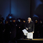 Нынешнюю мариинскую премьеру, вопреки ожиданиям, провел не Валерий Гергиев, а его ассистент Гурген Петросян (о замене дирижера публика узнала, когда уже погас свет в зале). Однако работа коллективов Мариинки, как всегда, была на высоте, и маэстро удалось выпукло представить все достоинства партитуры.