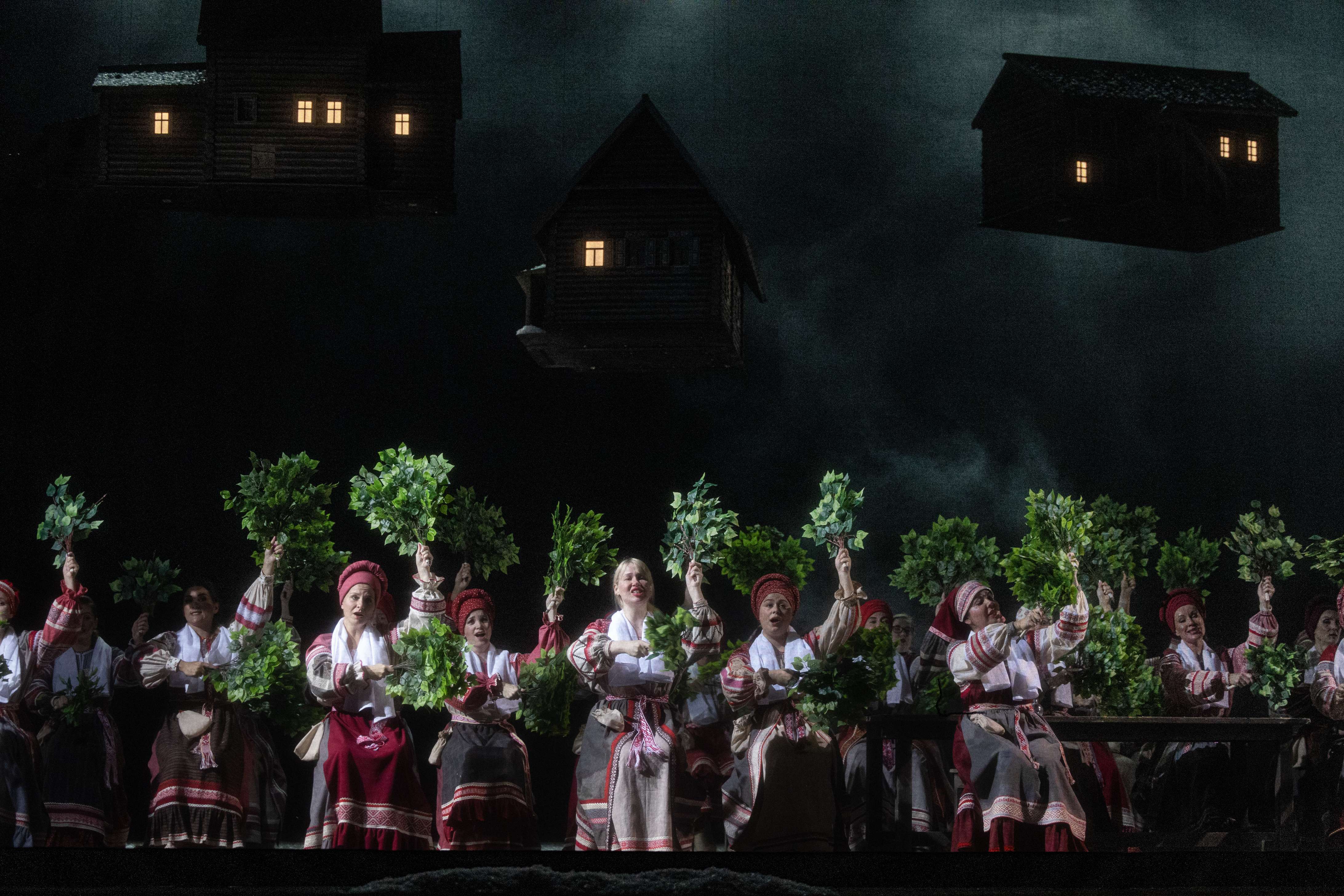 Московской оперетте определенно икалось – хотя, казалось бы, где она, а где «Новая опера», того «Голландца» поставившая. Но судите сами. Бежит из мест весьма отдаленных маньяк, севший за убийства своих многочисленных неверных жен. Одновременно летит с гастролей труппа Московской оперетты, которой суждено погибнуть в авиакатастрофе. Впрочем, уточняют титры, – легко, как легок сам жанр, практикующийся в этом театре: все были в стельку пьяны. Сиделец, оказавшийся тут как тут, прибирает золото-серебро (а также кое-что из останков столичных звезд на случай встречи с волками) и переоблачается из робы во что пришлось – фрак и теплый бархатный халат. Нашлась еще и маска, оказавшаяся беглецу от правосудия как нельзя кстати. Этаким Мистером Икс в исполнении Георга Отса он и повстречается с компанией мужиков, возвращающихся на автобусе в родное Бураново из Москвы. А на дворе – лихие 90-е с их разрухой и голодухой. Вот и едут мужики после удачного ченджа, поменяв в первопрестольной пушнину и прочие дары природы на мыло и зубную пасту. Дома их ждут, охлестывая себя березовыми вениками, женщины в полной экипировке – расшитых паневах и рубахах. Пока едет мыло – репетируют, потому как это местный хор (не он ли лет через 25 будет тешить Европу под брендом «Бурановские бабушки»?). Лишь одна не от мира сего: пока все в бане, она смотрит канал НТВ, где повествуют о трудной судьбе сбежавшего из колонии маньяка. В ее руках – ориентировка, которую только что раздали всей деревне милицейские. Ах, мама дорогая, это он! С невероятными зелеными глазами с невероятным страданием в них! И что теперь ей тривиальный ухажер – метеоролог Георгий?