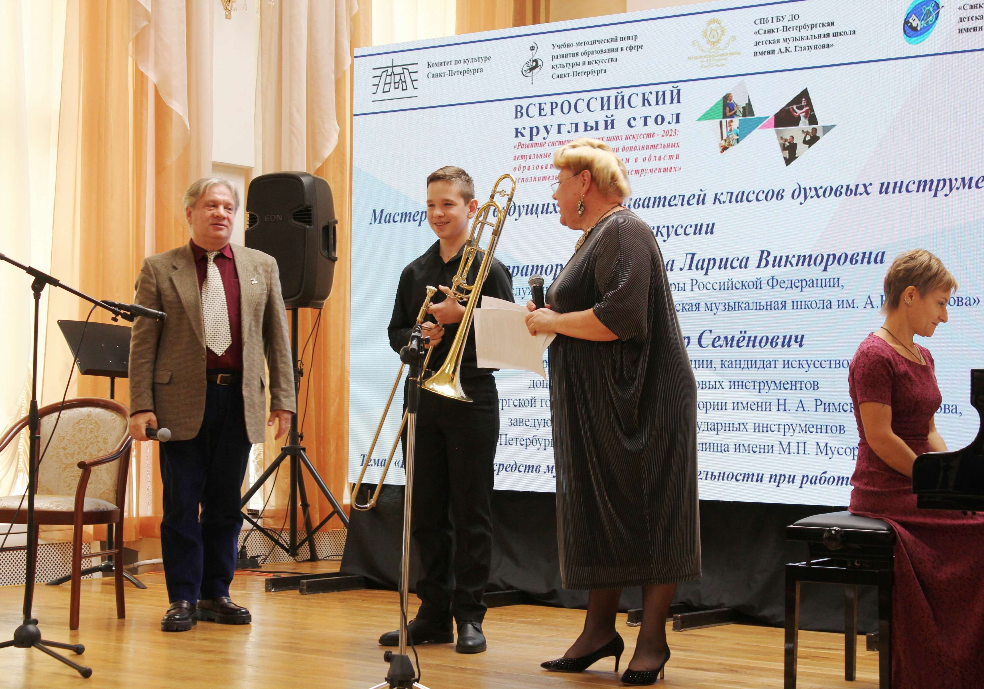 Не только обмен конструктивным опытом, возникновение новых идей и творческих импульсов в процессе обсуждения актуальных проблем ведущими экспертами в области преподавания и исполнительства на духовых инструментах – живые педагогические методики на открытых уроках и мастер-классах и живые концерты на лучших площадках Санкт-Петербурга показали, как высока сегодня планка педагогического и исполнительского мастерства в области духовых инструментов. В рамках Круглого стола прошли мастер-классы ведущих преподавателей классов духовых инструментов Санкт-Петербургской и Московской государственных консерваторий Дениса Быстрова (гобой), Ольги Ивушейковой (флейта), Григория Малиёва (кларнет), Виктора Ульянова (тромбон). Педагогический опыт профессионалов оказался востребован: интернет-просмотры открытых уроков растут с каждым днем.