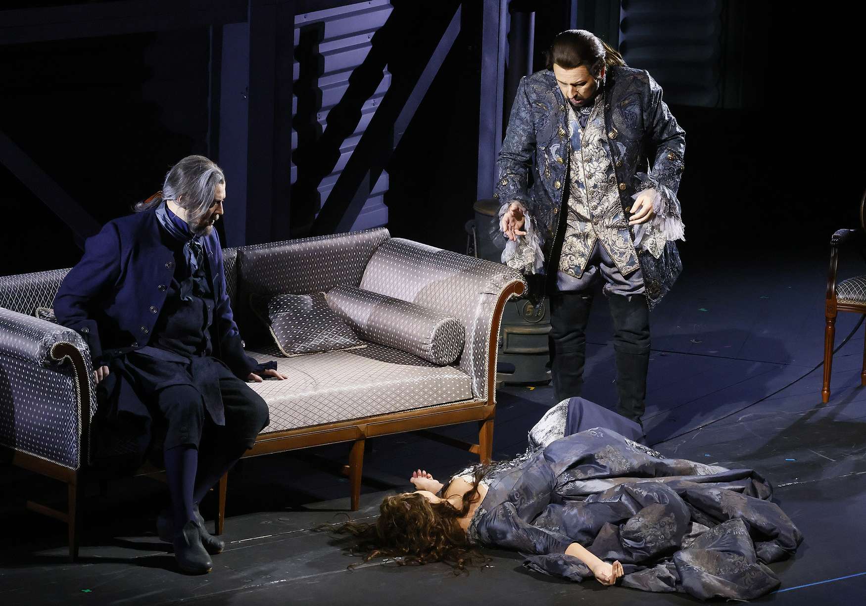 Первая причина из объективных: неудачное либретто. Хотя во времена Чилеа оно вряд ли таковым казалось. Легшая в его основу пьеса была известна любому мало-мальски образованному человеку: она полвека шла на сценах Европы, и в ней все причинно-следственные связи были как на ладошке. Но из либретто они исчезли, и сегодня проблематично хоть что-то с ходу понять в запутанной истории, кроме генеральной линии «любовь — ревность — трагическая развязка». Оттого в титры лучше не глядеть, чтобы не мучиться догадками, что́ это, к примеру, за девица Дюкло, так и не появившаяся в спектакле. Между тем с ее письма интрига начинается, а на ее вилле, подаренной поклонником Принцем де Буйон, — развивается. Но с какой стати там — по сути, в чужих владениях и без присутствия хозяйки — собрались на вечеринку все действующие лица, включая поклонника и его законную супругу? А что это за значительность, с которой тут толкуют о каком-то колье? С ним связана целая история, но она уйдет из либретто, а с ней — и мотивации поступков целых трех действующих лиц. Эти и прочие нескладушки ловко переведут сюжет в разряд абсолютно нереальных. Но другие причины неправды кроются уже в самом спектакле.