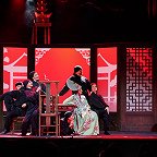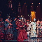 Почти через сто лет «Сына мандарина» поставили у Бориса Покровского – под рояль, потому как партитуру автор так и не создал, а балакиревская оркестровка, появившаяся в 1860-х, в спектакль, воссоздающий в самом ироничном ключе атмосферу той самой домашней премьеры, не вписывалась. Про концепцию помянуто не случайно. Так, на свой лад, здесь решили краеугольную проблему оперы: что делать с Востоком в сюжете, если музыка почти всецело смотрит на Запад. В новой постановке «Мандарина» из положения вышли, выпустив в преамбуле скоморохов, которые и сообщат воссевшему в первом ряду императору Поднебесной, что приехали они из России в этакую тьмутаракань (пардон, даль), чтобы потешить его величество своим искусством. Вот и весь фокус режиссера Алексея Франдетти, которым снимутся все вопросы. Кроме одного: так роскошно разодеть и загримировать Сына неба и его свиту, чтобы оставить час сидеть почти без дела, – не бросить ли на ветер идею и средства?