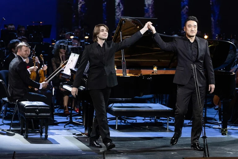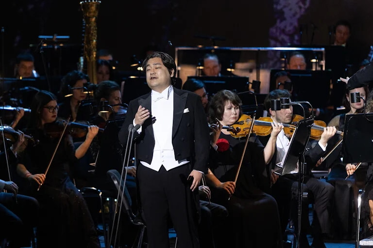 В западном отделении упомянутые исполнители (из тех, кто выходил на сцену вновь) практически полностью подтвердили те же сомнения, что возникли и в русской части. Для Турандот Ольги Масловой ее резковатые, «злые», но стабильные верха были настоящей находкой, однако красота и весомость драмсопрано вновь не проявилась. Ливей Хоу и Дамир Садуахасов опять повторили те же ошибки, что и в первом отделении: первый печалил тугими верхами в Серенаде Мефистофеля из оперы Гуно, второй – отсутствием тембрального наполнения в арии Су Чонга из «Страны улыбок» Легара. Ожидаемо хороши оказались Савинкова и Перязев в дуэте Ганны и Данило из «Веселой вдовы», но со свободой ощущения себя на сцене еще есть проблемы. Были и новые участники концерта. Мария Лупарева качественно, но скучновато по эмоциям спела арию Гальки из оперы Монюшко; Гульдане Алданосовой вполне покорился непростой вальс Джульетты из оперы Гуно, ее голос по-настоящему сверкал; для Жаргал Цырендагбаевой виртуозная ария Ядвиги из «Робинзона Крузо» Оффенбаха пока явно на вырост – голос звучит не всегда ровно и одинаково уверенно. Специальным гостем концерта оказался корейский тенор Чи Хун Сон, обладатель I премии последнего Конкурса Чайковского: в спетых арии и дуэте (с Марией Лупаревой) Рудольфа из «Богемы» и арии Тонио из «Дочери полка» он продемонстрировал великолепные верха – точные, сочные, яркие и расцветающие, – но с ровностью звучания голоса в целом у него не все благополучно, что несколько удивительно для победителя столь престижного международного соревнования.
