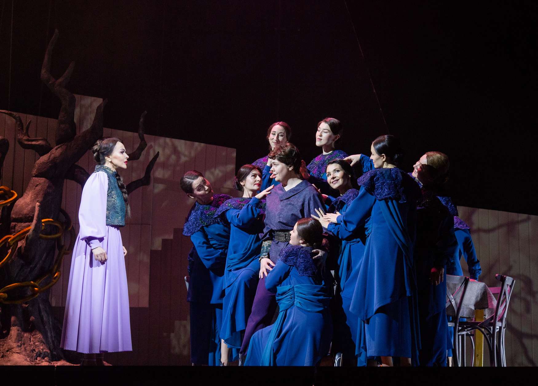 В театре есть три Людмилы: одна другой не столько лучше, сколько отличнее. Людмила у Эльвины Муллиной – Людмила-европейка, знающая вкус и толк, безупречно владеющая музыкальным временем, чувством стиля и формы. Кажется, она – посланница самого Глинки, живущая в этой опере по законам его музыки. Людмила у Александры Королевой – нежность, хрупкость, открытость, порыв, солнечный трепет, пылающая надежда. Наконец, третья Людмила у Анны Лукановой – поразительный драматизм, почти отчаяние Виолетты в «Травиате» в замке Черномора, когда поет «не видать мне более ни родного батюшки». Свою партию Анна насыщает в каждом такте психологически правдивыми чувствами очень живой, из плоти и крови девушки, рвущейся навстречу сказочному счастью. Оперная труппа Музыкального театра Карелии вообще сильна актерской спаянностью и чего не допоет, обязательно доиграет. Здесь есть несколько роскошных Горислав у Дарьи Батовой, Анастасии Авериной и Натальи Ландовской, каждая из которых балансирует в этом рисунке роли между примадонной и феминистским борцом за счастье и свободу человечества. Русланам партия дана на вырост, но и Евгений Урсул, и Вадим Мокин героически с ней справляются. Сильная женская актерская школа в этом театре, одной из хранительниц метода которой является Елена Полиенко, проявлена в партии Наины: на нее выпадает не столько вокальная, сколько именно драматическая нагрузка, так называемая «работа лицом» из серии «следите за руками». И за Еленой Полиенко, Евгенией Гудковой, Марией Белокурской наблюдать – сплошное удовольствие. Да и мужчины умеют повеселить, и Фарлафа с нескрываемым восторгом исполняют в очередь Александр Ватолкин с Вадимом Мокиным. Далеко не каждый театр похвастает сразу тремя Ратмирами, а здесь они есть – Евгения Гудкова, Маргарита Чемдуж, Мария Белокурская. С мудростью праотцов тут чуть сложнее, и за нее несут повышенную ответственность Чингиз Кадыров и Максим Аксенов, совмещая Баяна с Финном в одном лице. Но, как говорится в «Мастере и Маргарите» Булгакова, «ваш роман еще принесет сюрпризы», так и «Руслан и Людмила» на карельской земле еще даст свои благодатные всходы.