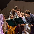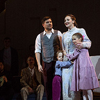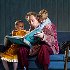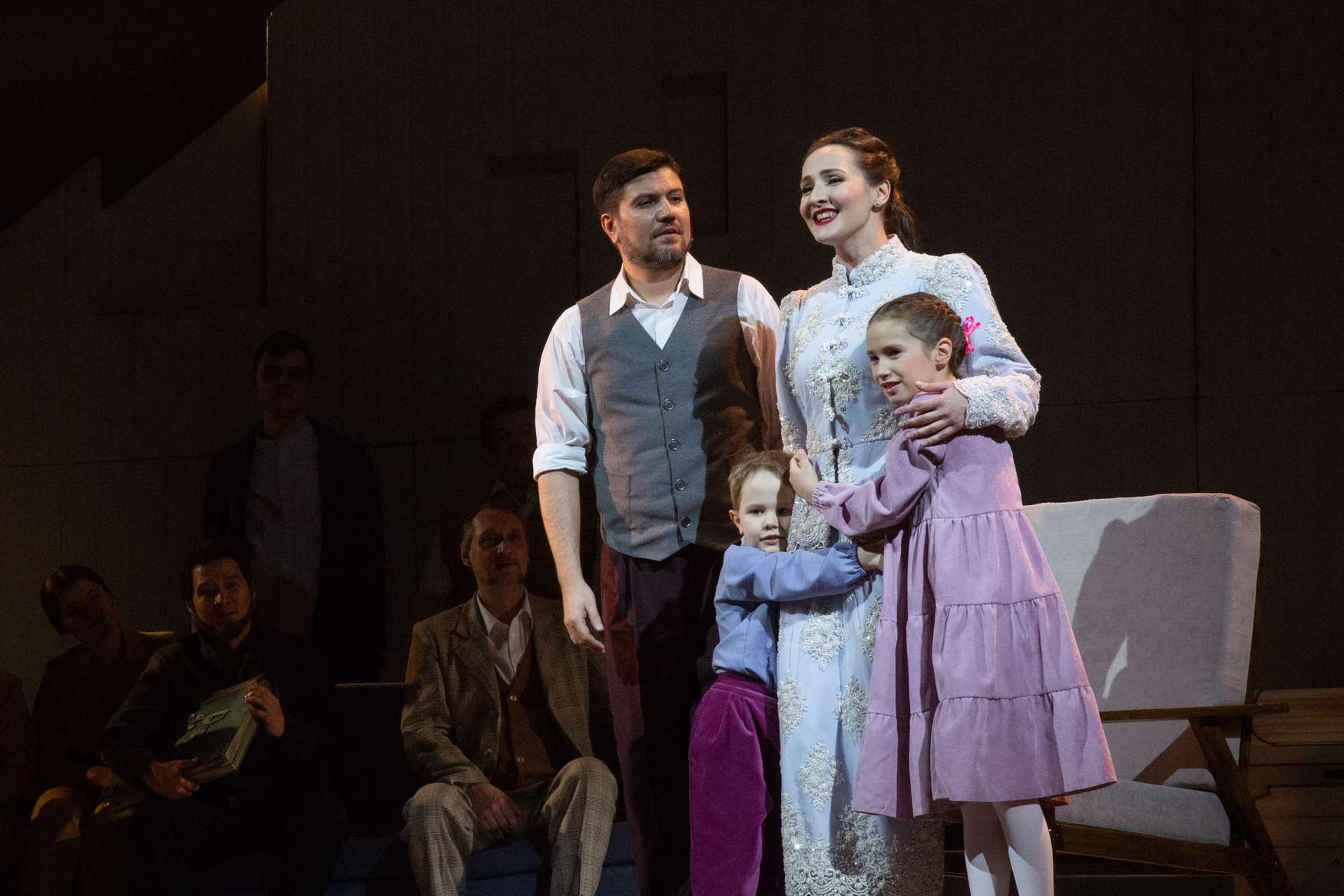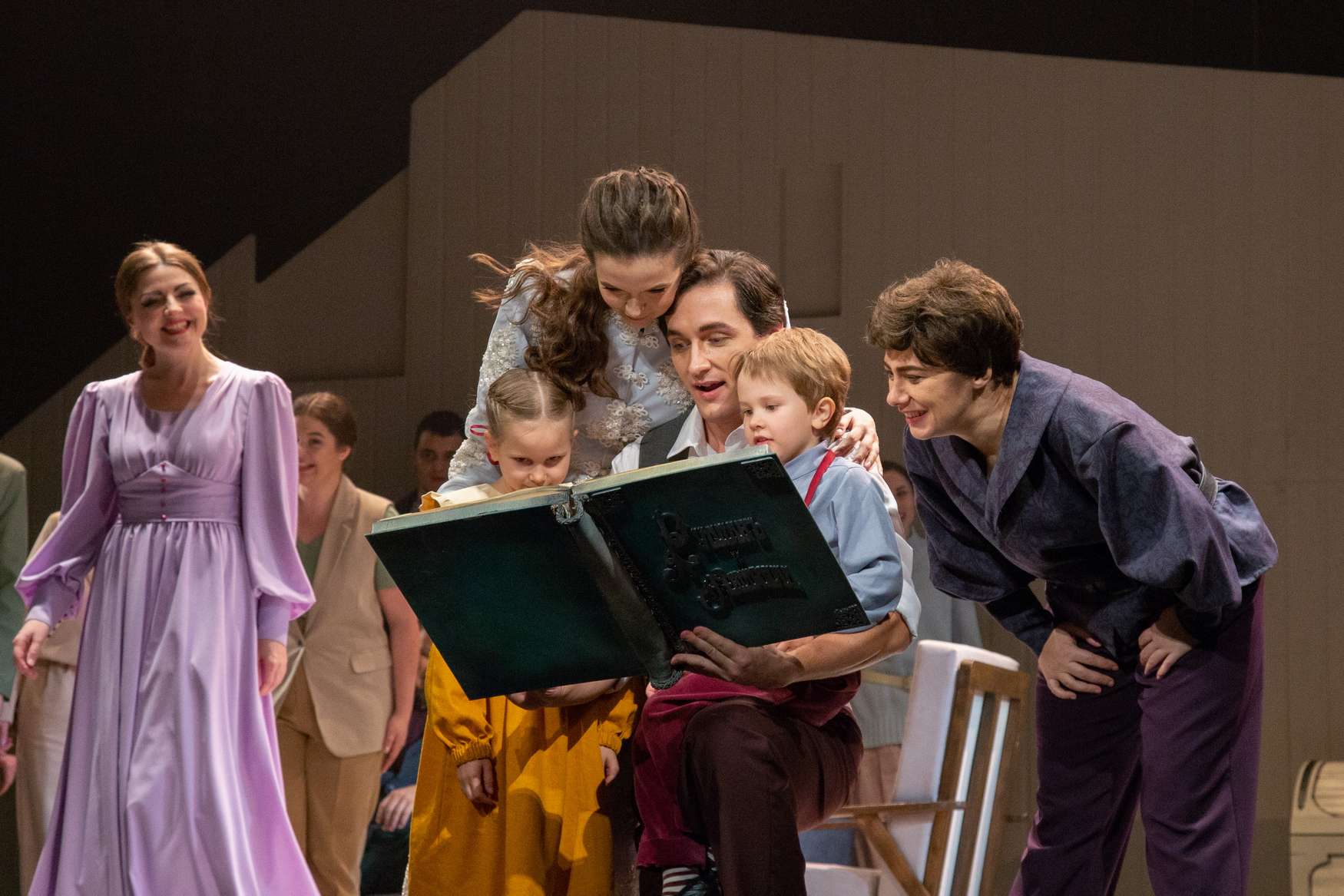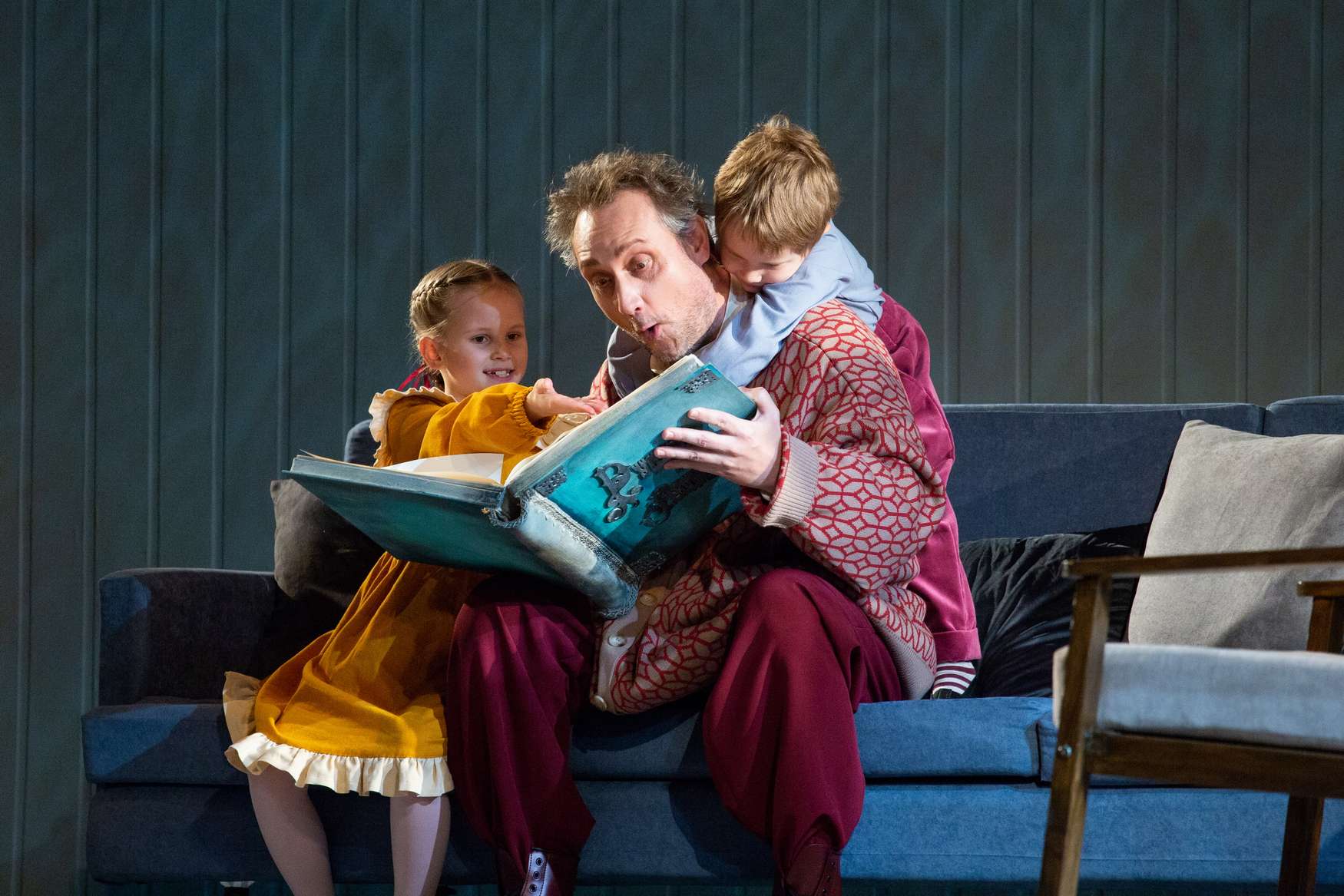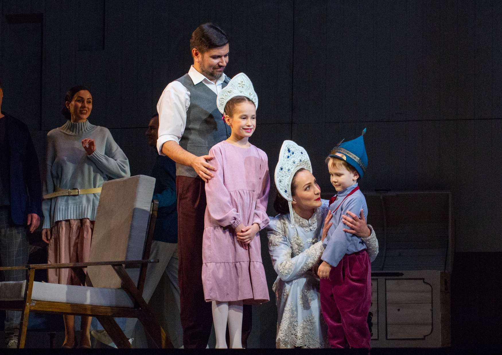Первые «кадры» новой постановки в чем-то даже пленили милотой дизайна, в котором увиделась скандинавская, или шире – северная – лаконичность, где нашлось место, разумеется, и условно карельским мотивам, сигналящим жадным зрительским глазам в виде орнамента на скатерти и красных фигурных подсвечников. Мы попадаем в «светлицу» главных героев, они собирают на стол. Режиссер сочиняет новую историю, словно пишет незатейливое школьное сочинение на тему сиквела «Руслана и Людмилы». В продолжении истории пушкинской поэмы мы встречаем уже как бы повзрослевших героев с двумя очаровательными детишками – мальчиком и девочкой, рассматривающими большую книжку с красочными картинками. Такое в истории немногочисленных интерпретаций второй оперы Глинки случилось, кажется, впервые, чтобы жених и невеста, какими им положено быть по либретто, с самого начала оперы стартовали как муж и жена, причем такими, каким семейная рутинка уже успела набить оскомину, если верить красноречивым жестам Людмилы, отмахивавшейся от непонятливого мужа, всего лишь уточнившего, к примеру, «а где у нас красивые тарелки?».