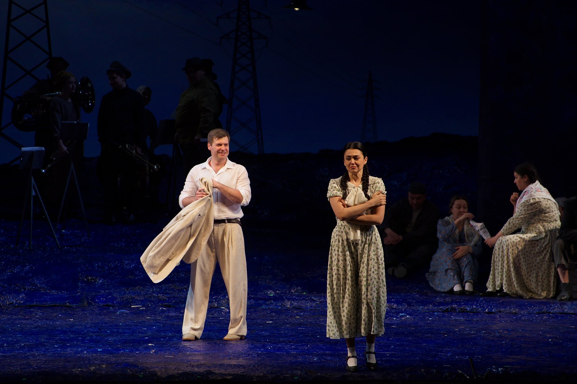 Да, щедринской изощренности в ней не было. Традиционализм возобладал над смелостью: актуализировать оперу в ее 63-х-летней не слишком счастливой истории еще никто не решался. Но у Писарева из рукава явился свой козырь. Это не напитывание действия занятными подробностями (в числе которых легендарная советская радиопобудка или с умыслом пущенные в сельском клубе кадры из «Кубанских казаков»). Это не ловкое маневрирование между пафосом, иронией, слезой сентиментальной и слезой горькой, и не предъявленное в нужном золотом сечении соотношение реалистического и условного. Козырь — интонация, с которой будет рассказана история. В ней — долгожданное и теперь все более разливающееся в воздухе: мы начинаем любить наше прошлое.