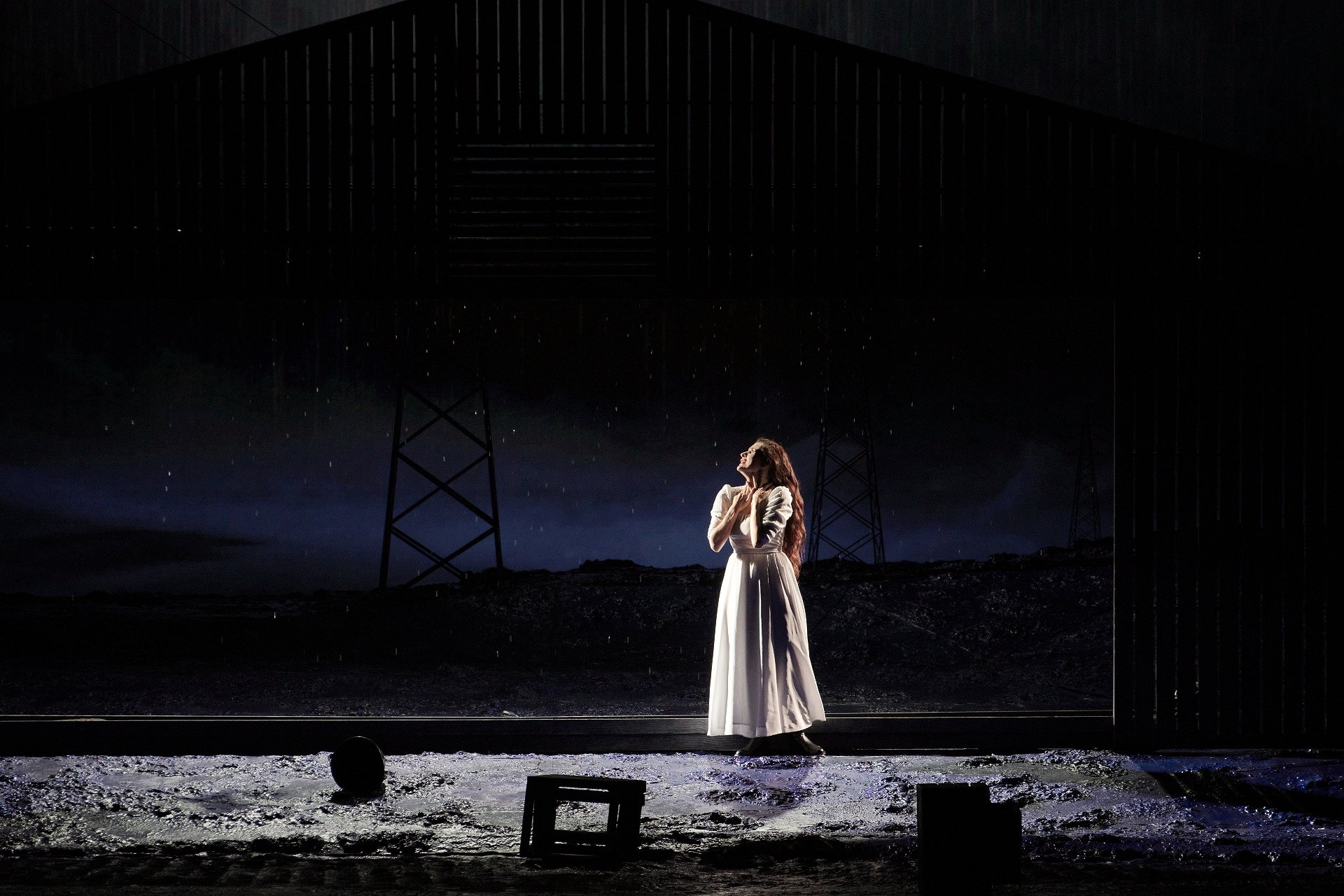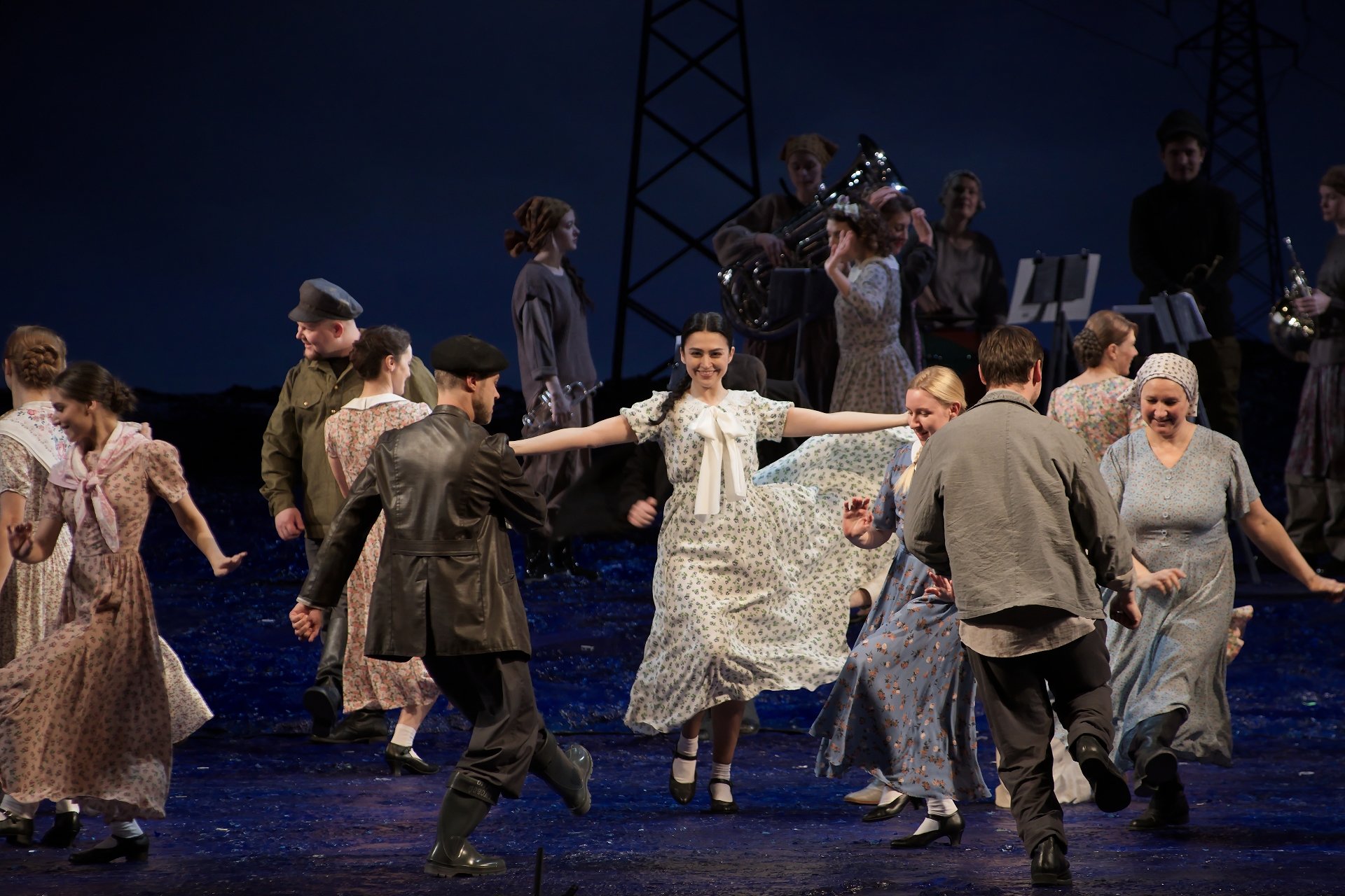 Дождь, грязь, мужики, забивающие козла под куском рубероида... А на заднем плане — мечтательные танцорки, картинно выворачивающие крыльями плечи и жадно заглядывающие за горизонт, не иначе как в поисках принца. И он-таки явился. Весь в белом, с чемоданом, будто прямо сейчас из Рио-де-Жанейро. На самом деле — это свой, Володя Гаврилов, возвращающийся после долгой отлучки домой из города, где понахватался, на взгляд деревенских, излишней свободы — в манерах, словах, мечтах. Он и произведет тут маленькое землетрясение. Как маленькое, если в музыке страсти такого накала, что шостаковичевская «Катерина Измайлова» грозным призраком встанет? А так: тектонических сдвигов не случится. Блеснет лучом света 20-летний «мачо», встрепенется пара женских душенек — его ровесницы Наташи и немолодой (как беспощадно выразился сам Щедрин) председательши Варвары, которой на самом деле и тридцати нет. Да и вернется все на круги своя: серое небо, мокрое поле, сев, трудодни и любовь, которая только в мечтах. Но долой печаль! Оркестровая буря завершится мечтательным умиротворением, героиня под струями утреннего дождя «смоет» чувственное наваждение. А впереди еще и оптимистический Эпилог с хоровыми частушками-славицами про солнце над Россией, радость ударного труда, мир во всем мире, в подголосках к которым… нежные «бе-е-е-канья» колхозной животины. Однако улыбку, спровоцированную собственным же изобретением, постановщики с губ зрителя быстро сотрут, вписав в картину всегда радостного деревенского дурачка, зависшего на опоре ЛЭП, и бабенку с бутылкой. Это эхом подаст голос Великая Отечественная, одного сведшая с ума, другую обрекшая на одиночество и то же обещающая третьей — Варваре. Так что снова здравствуй, печаль.