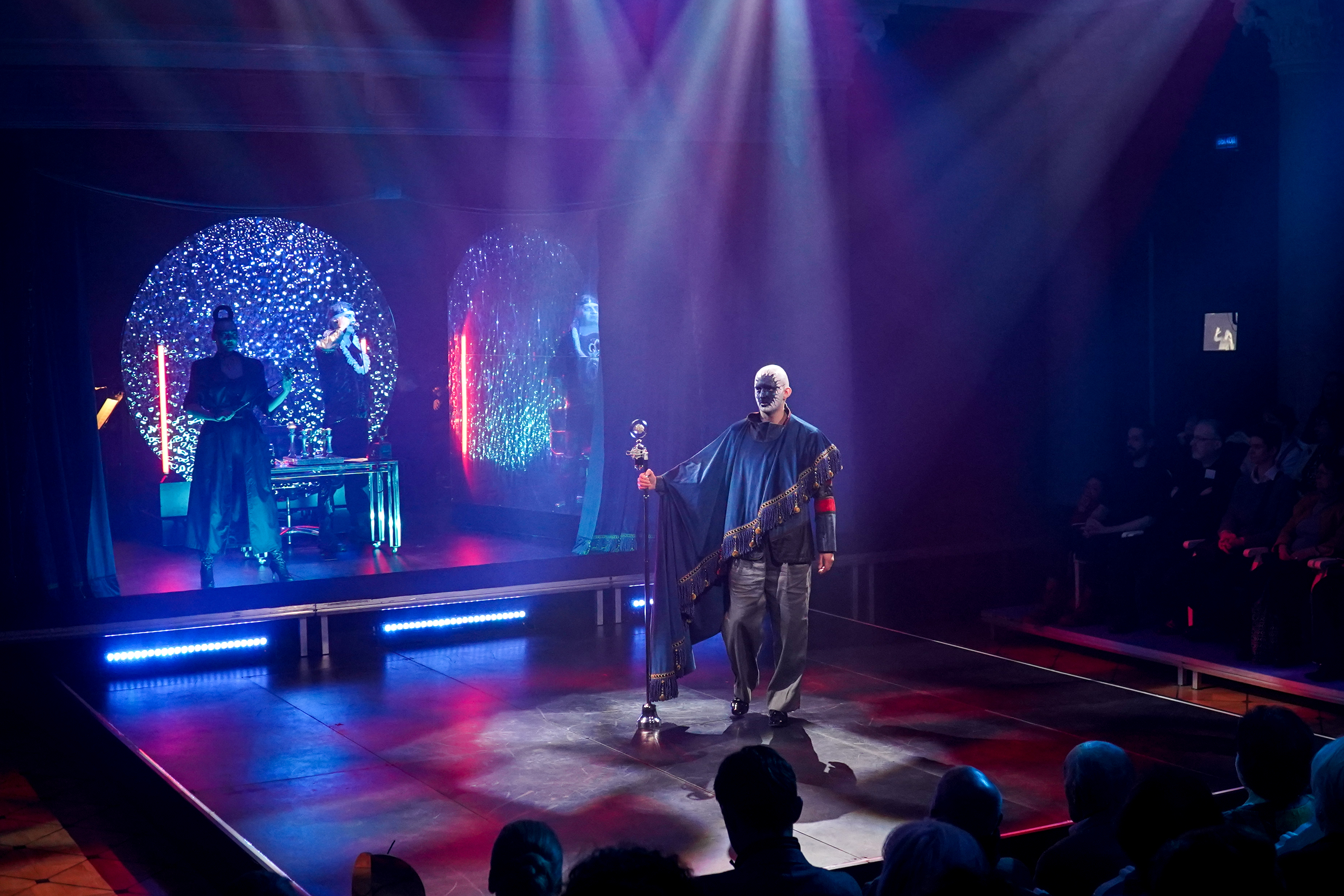 Ульман с Кином придумали нечто вроде кабаре на 50 минут — элегантное и даже остроумное сочинение, названное не оперой, а легендой в 4-х сценах. Забавен инструментальный состав, который, вероятнее всего, нарисовался композитору не в свободном полете фантазии, а в тисках обстоятельств: что на тот момент имелось в гетто, то и пошло в дело. А имелись фортепиано, струнные, труба, альт-саксофон, несколько деревянных духовых, барабан и фисгармония с банджо и гитарой. Свои сюрпризы найдутся и в музыке, которая полна приветов от тех, чьи имена для просвещенных узников Терезиенштадта были не пустой звук. Помашет из далекого далека нотным листочком Гайдн: его «Императорская песня» отозвалась в гимне Третьего рейха. Промелькнут крохотные цитаты из запрещенной малеровской «Песни о Земле» и из «Израильской» симфонии Йозефа Сука. Финальный, полный несказанной печали квартет будет написан в традициях лютеранского хорала, а колыбельная напомнит о песенке времен Тридцатилетней войны в версии немецкого композитора XVIII века Рейхардта. Эти отсылки — не игра музыкальных слов. В них указание на конкретное местоположение и на конкретные реалии новой Атлантиды (столь же обреченной, как и мифическая, верили авторы оперы). И в них явственное желание композитора окутать братьев по несчастью и крови чем-то родным, дающим силы. Посмотри, Якоб (или Ицхак, или Мойша): с нами Малер, и моим пером иногда водит Шёнберг, потому как куда ж деть те годы, что я вращался в его сферах. А помнишь Вайля с его драйвом и сарказмом? Верь, и он молится за нас из своего американского далёка... Однако упрекнуть Ульмана в пестроте музыкального языка не удастся: из его рук вышло обаятельное целое, интересное с первой до последней минуты. Но погрузиться в этот мир в «Геликоне» в полной мере оказалось невозможным.