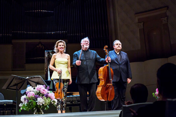 Все три имени здесь – Анне-Софи Муттер, Линн Харрелл и Ефим Бронфман – звездные-перезвездные: уж если такие музыканты объединяются в трио, то явно не потому, что не преуспели в сольной карьере. И, наверное, все трое каждый раз перед выступлением предвкушают огромную радость совместного музицирования, обращающего сумму в произведение.