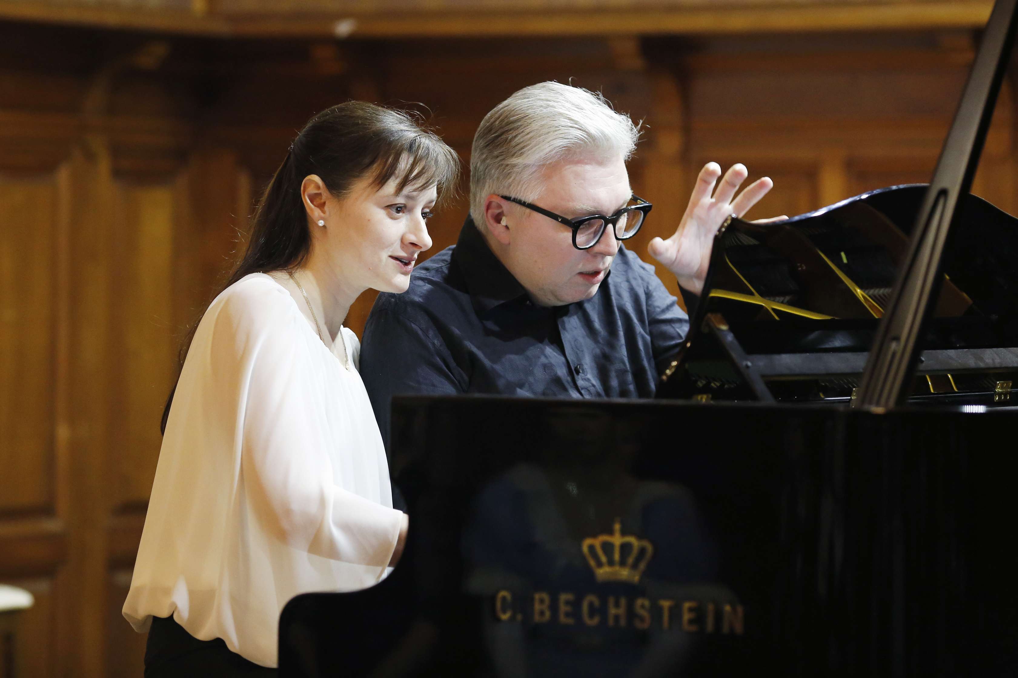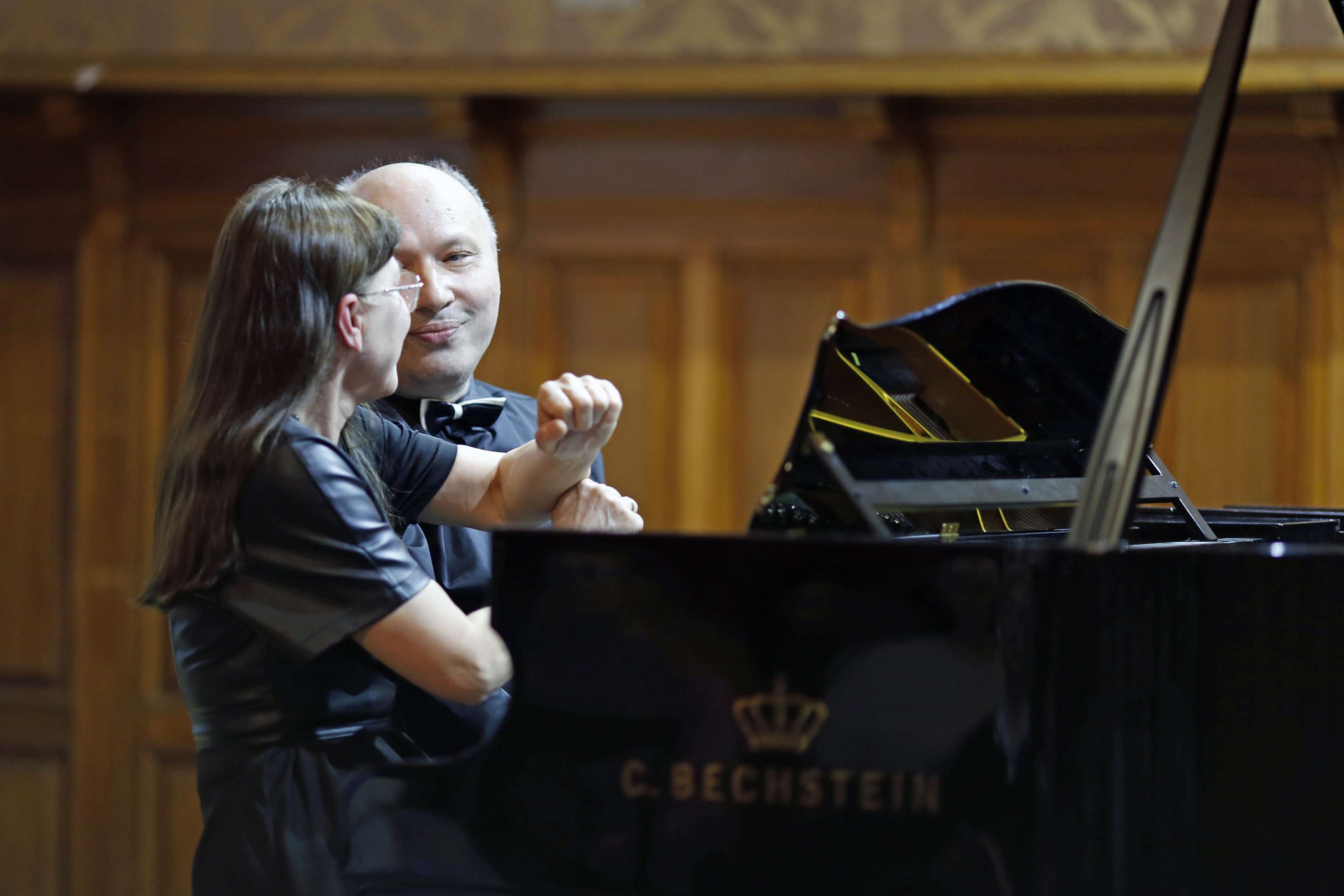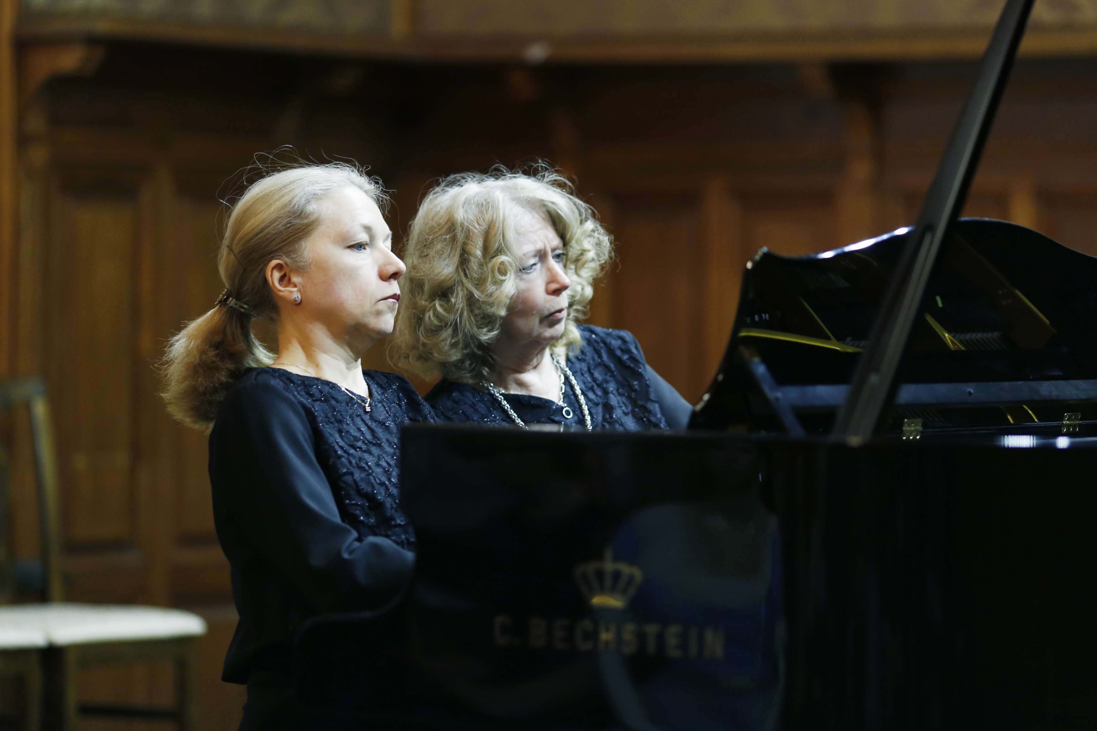 Диалоги поколений, композиторских и исполнительских школ, диалоги публики с мастерами дуэтного искусства, диалоги-контрасты музыкальных жанров — эти принципы последовательно раскрывались на протяжении всего фестиваля. Он начался в Луганской государственной академии культуры и искусств им. М.Л. Матусовского концертом и мастер-классами фортепианного дуэта петербуржцев Надежды Медведевой–Олега Кошелева, продолжился в Северной столице. Сценическими площадками для множества дуэтов стали концертные залы, библиотеки, культурные центры, знаковые места притяжения петербургской интеллигенции. Каждый вечер — новое пространство, новые герои, новая музыка и… инструментарий. Если фортепианным ансамблем за одним и двумя роялями в Петербурге никого не удивить, то фортепианные дуэты, аккомпанирующие певцам, хорам, квартету саксофонов, дудуку и канону, вызывали удивление и восторг.