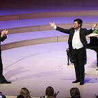 В-третьих, и это самое главное, поведение певца на сцене, его манера держаться, вести выступление – вот это был уже настоящий цирк, откровенно дурная клоунада. Повторилось то, что Москва «имела счастье» видеть осенью в КЗЧ: гипнотические пасы в зал, легкое кокетство со слушательницами в первом ряду, неоднократное падение ниц и картинные вздымания и заламывания рук, порой откровенное кривляние и комментарии до, после и чуть ли не во время пения – все это можно было наблюдать буквально в каждом номере программы. Причем повторилось все это еще и в несколько раз более утрированной форме – достаточно сказать, что артист закончил выступление метанием букетов и нот в зал. Публика стала свидетельницей невероятного балагана, какой можно увидеть не на всяком эстрадном концерте. Это был не вечер камерной музыки, а плохо проведенное шоу-импровизация, во время которого Григоло делал что вздумается, и музыке, к сожалению, там не было места.