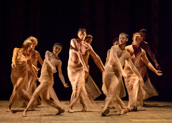 Под ритмы старинных танцев Тешигавара предложил медитативное хореографическое действо, в котором принял участие вместе со своей многолетней партнершей и ассистентом Рихоко Сато. На фоне уходящих вдаль колонн (фирменная картинка дроттнингхольмской сцены) одетые в черные облегающие костюмы, они плавно чертили руками и ногами загадочные иероглифы, не имеющие ничего общего с французской барочной танцевальной традицией и образующие с музыкой ясный контрапункт. Основная динамика танца сводилась к взаимному притяжению и отталкиванию героев, завораживающих своими импульсивно-стремительными или, напротив, нарочито медленными движениями.
