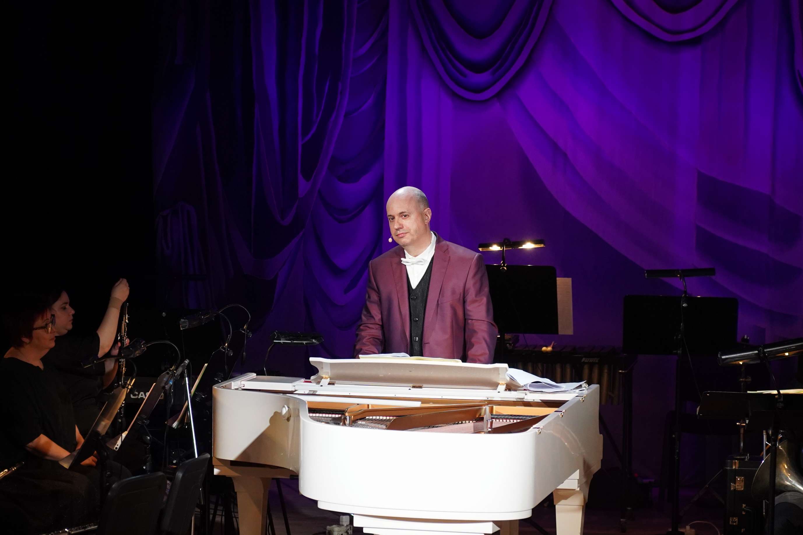 Под таким названием в «Геликон-опере» прошел юбилейный концерт Михаила Егиазарьяна. Его имя не то чтобы уж очень на слуху у широкой публики. Даровитый пианист (ученик Наума Штаркмана), он около двадцати лет назад пришел в «Геликон» в качестве концертмейстера. В концертах, устраиваемых театром, Егиазарьян играл и сольные вещи, демонстрируя незаурядный талант, но исполнительской карьеры так и не сделал. Возможно, не слишком-то и стремился, заразившись театральной «бациллой». Вскоре у него появилась возможность проявить себя в качестве актера (сначала без пения), затем певца, и наконец – дирижера. В этой роли он в основном и фигурировал на вечере, посвященном его 50-летию, хотя садился и за рояль. А еще выступал в качестве ведущего.