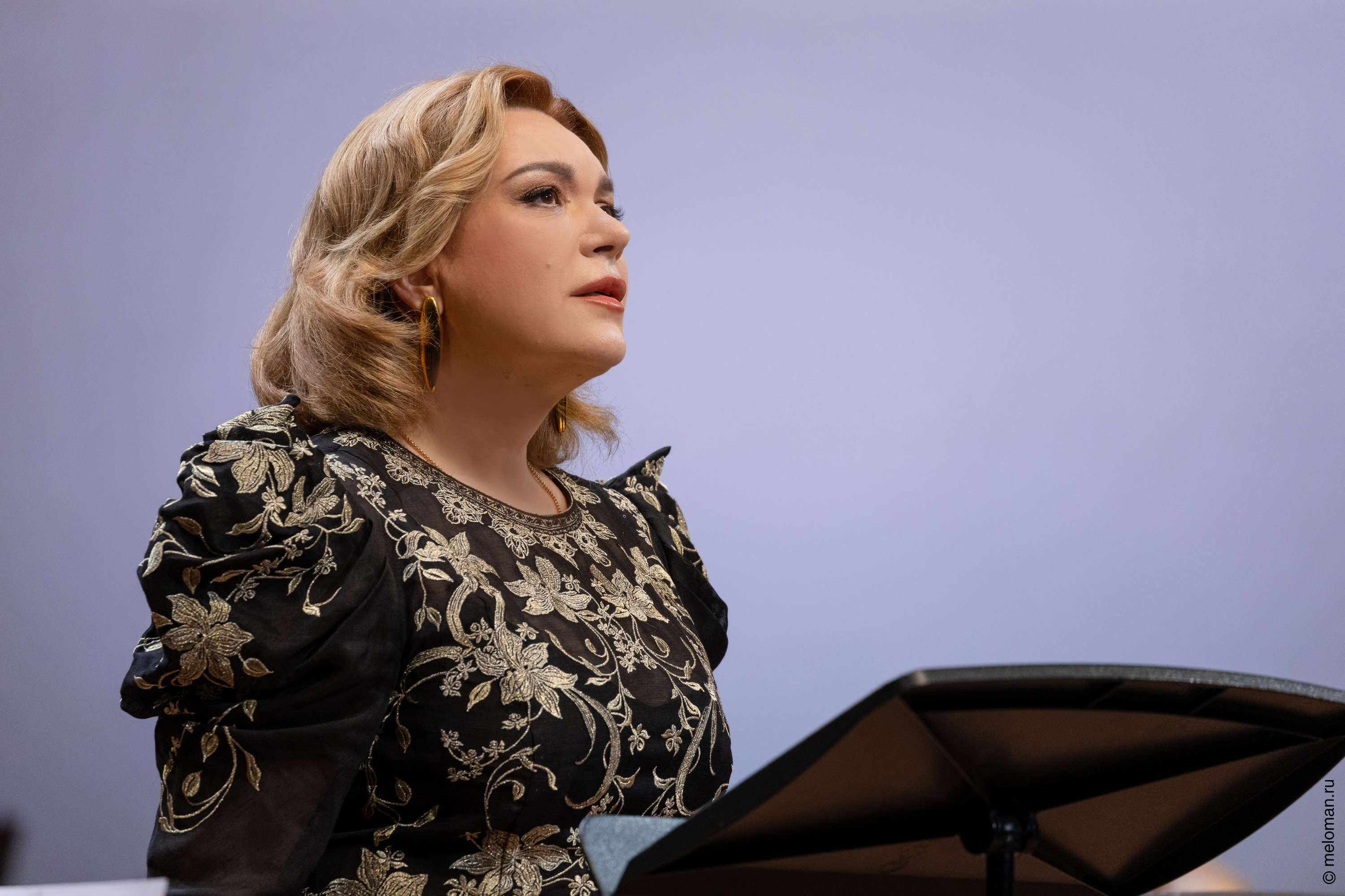 Несмотря на то, что собственно вокальная часть составила лишь половину хронометража концерта, его центром была Екатерина Семенчук. Знаменитая солистка Мариинского театра достаточно часто появляется в Москве, здесь ее знают и ждут – мощный и богатый голос певицы, разнообразие репертуара, выразительные интерпретации неизменно привлекают внимание публики. Однако нынешнее выступление оставило двойственное впечатление.